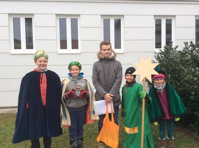 Unter dem Motto "Wir setzen Zeichen - für eine gerechteWelt" waren unsere Jungscharkinder als Sternsinger von Mittwoch, 4. bis Freitag, 6. Jänner 2017 in Wolkersdorf und Riedenthal von Haus zu Haus unterwegs.