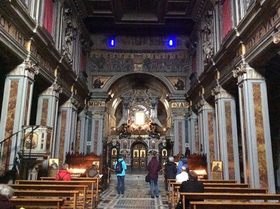 Zeitig in der Früh ging es los; erst mit dem Bus zum Flughafen und dann nach Rom. Für manche überhaupt ihr erster Flug. Am Flughafen in Rom stiegen wir wieder in einen Bus um. Dieser brachte uns zu unserer ersten Station: Castel Gandolfo, dem früheren Sommersitz der Päpste. Hier war Zeit zum Ankommen. Ein erster Kaffee, Eis, oder ein Besuch des Papstpalastes. Email Kraterrand entlang ging es anschließend weiter nach Grottaferrata,wo wir die Italien-byzantinische Abtei S. Maria besuchten. Den Abschluss unseres Ausfluges in die Albaner Berge bildete Frascati, wo wir in einer kleinen Cantina die kulinarischen und lukullischen Vorzüge der Region genießen konnten.