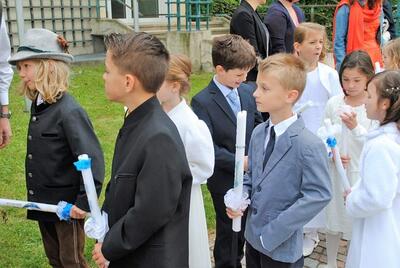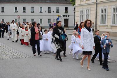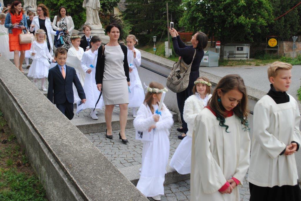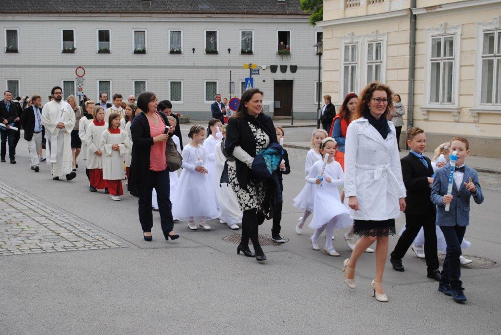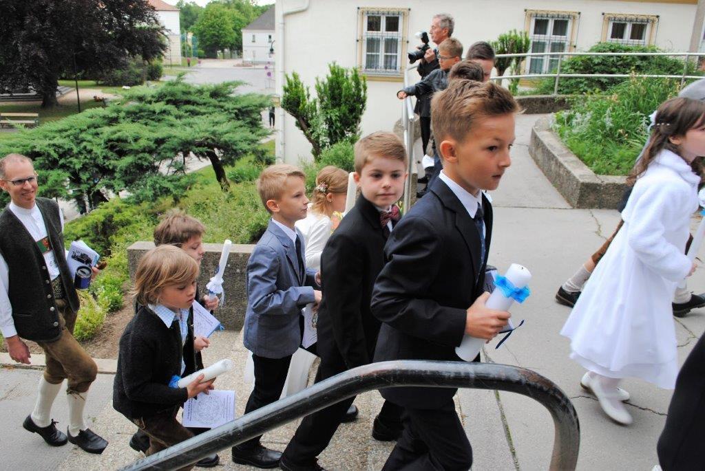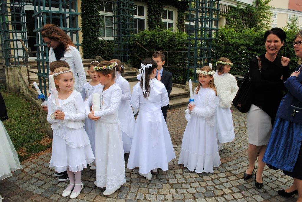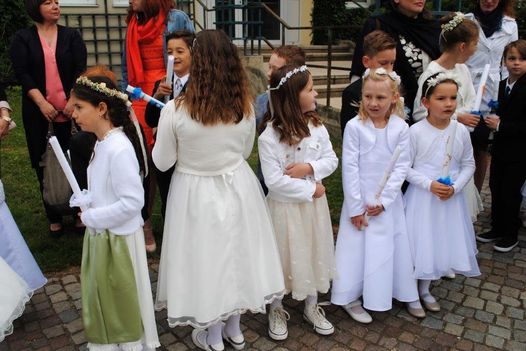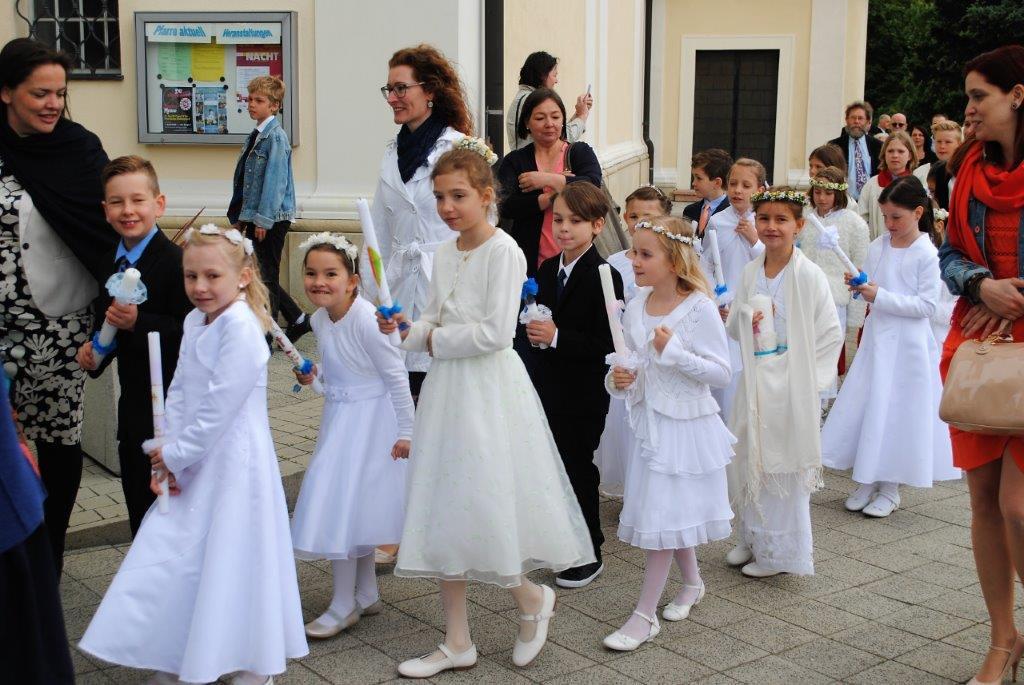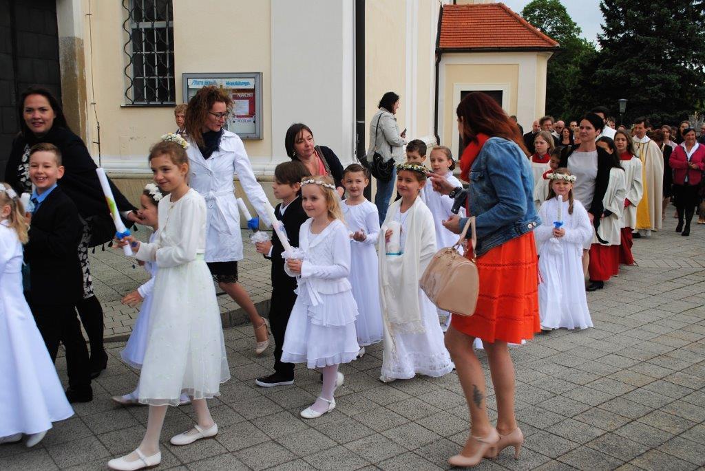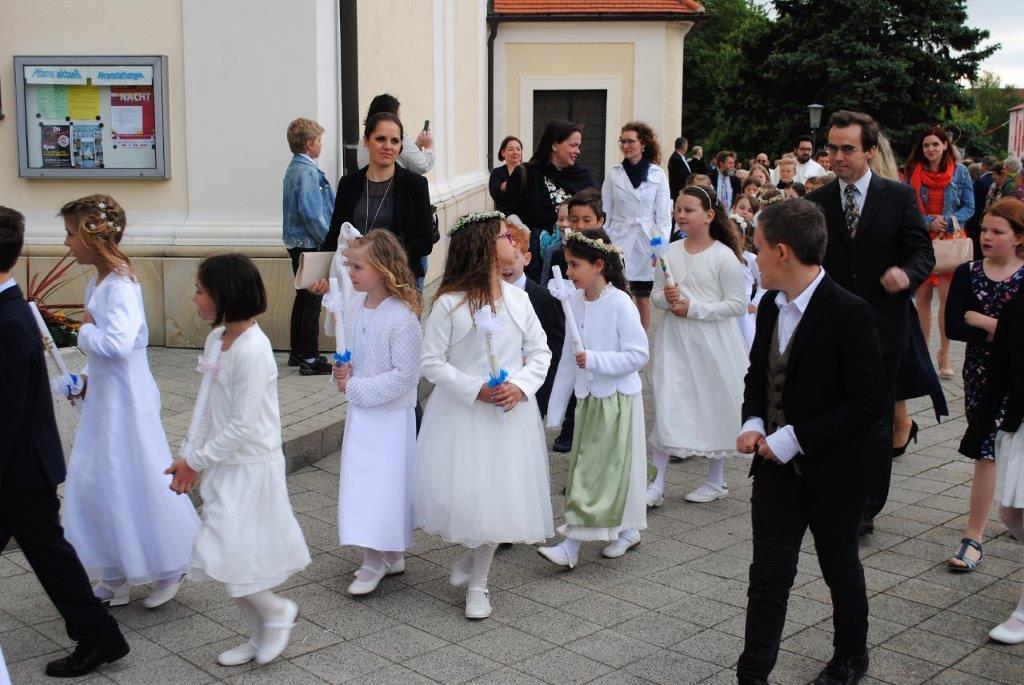 Zu Christi Himmelfahrt am 25. Mai 2017 feierte unsere Pfarre das Fest der Erstkommunion. Dabei empfingen 33 Kinder aus Wolkersdorf und Riedenthal erstmals die Hl. Kommunion.