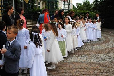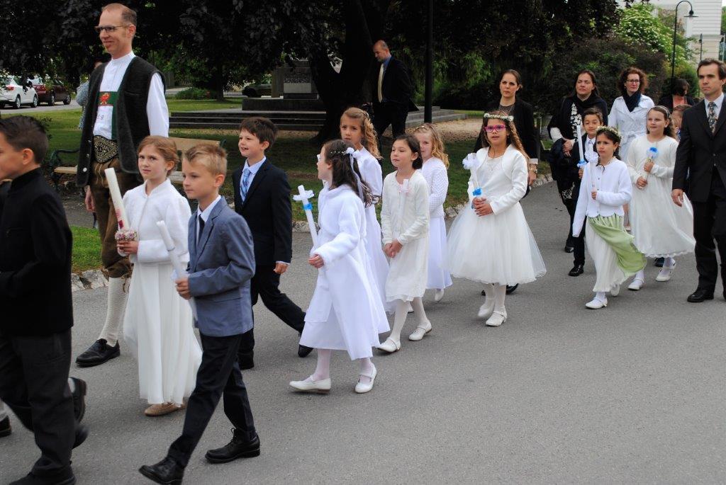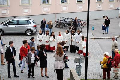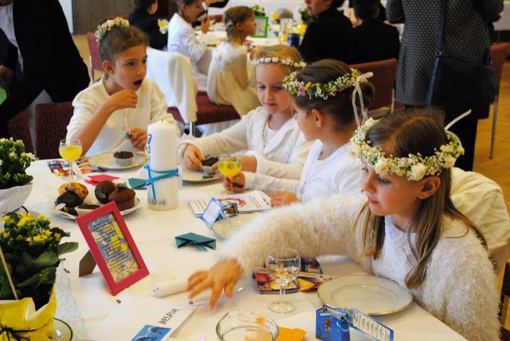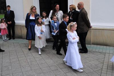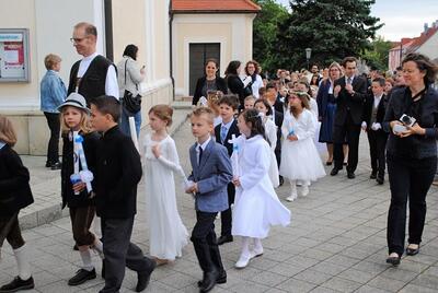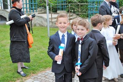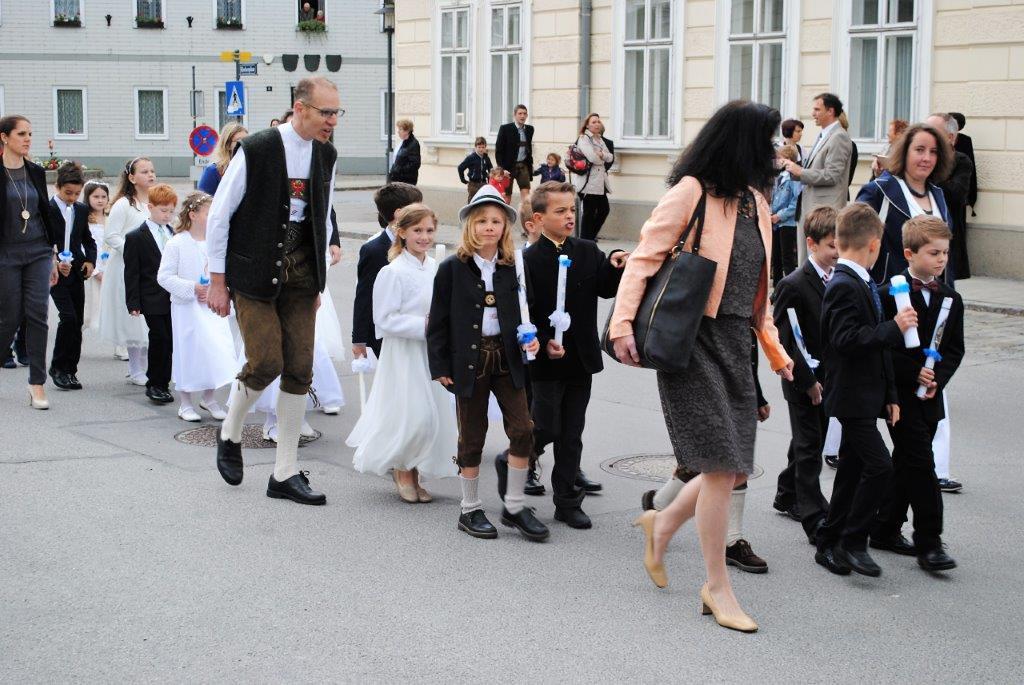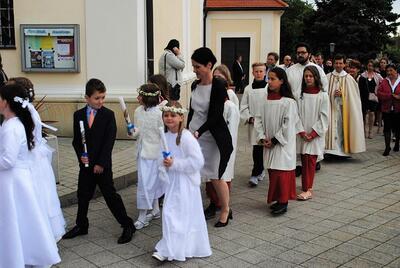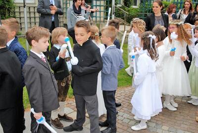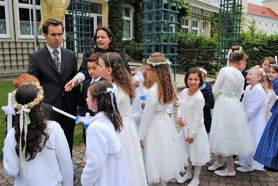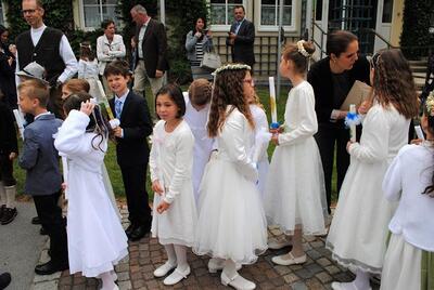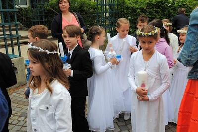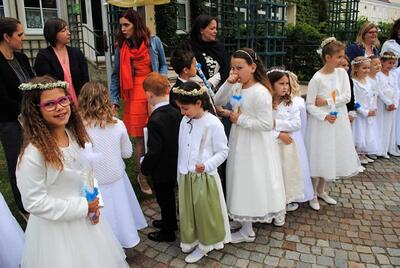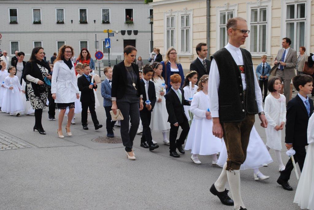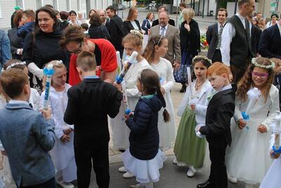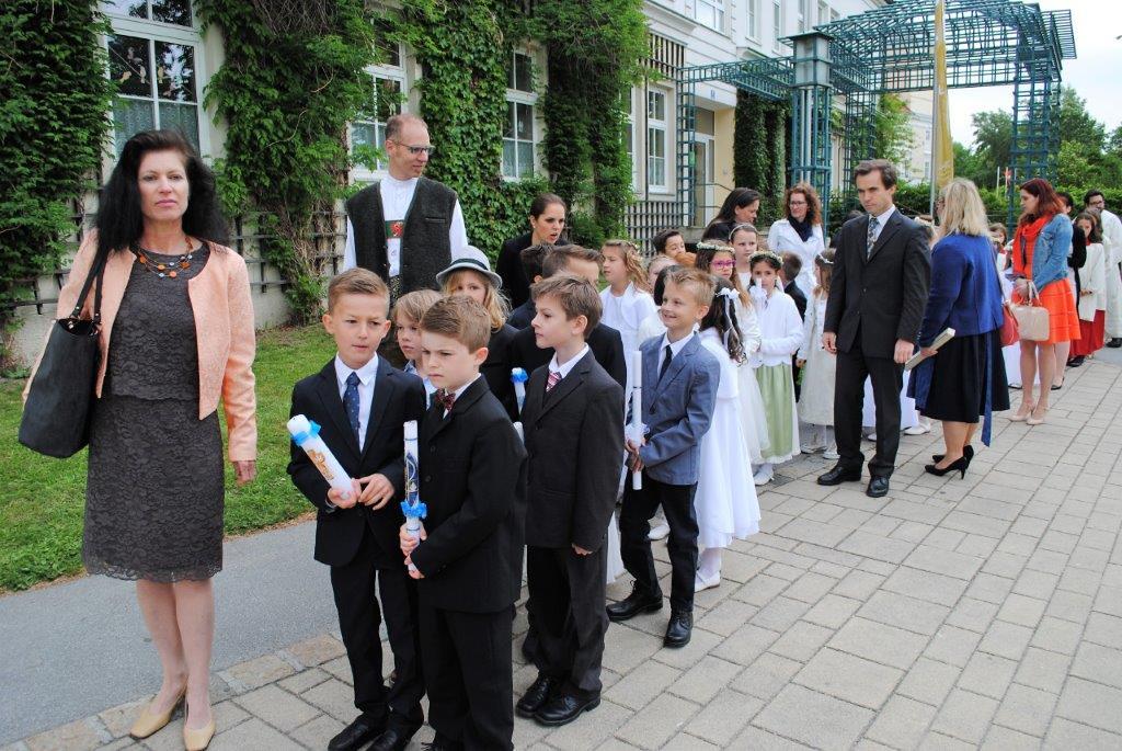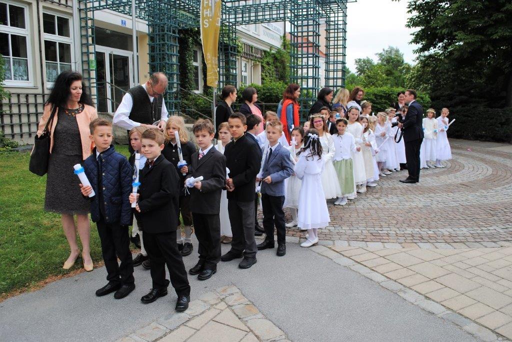 Zu Christi Himmelfahrt am 25. Mai 2017 feierte unsere Pfarre das Fest der Erstkommunion. Dabei empfingen 33 Kinder aus Wolkersdorf und Riedenthal erstmals die Hl. Kommunion.