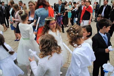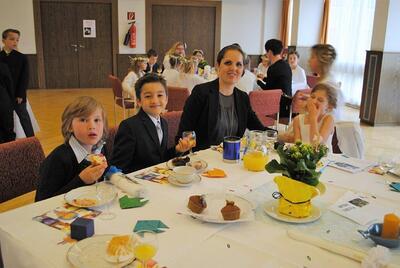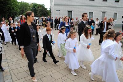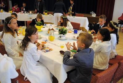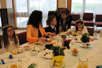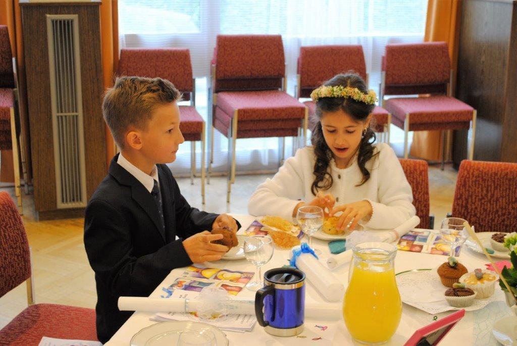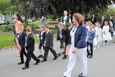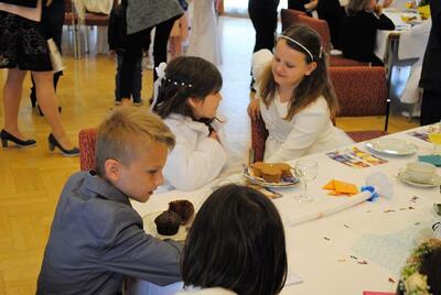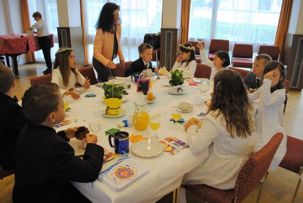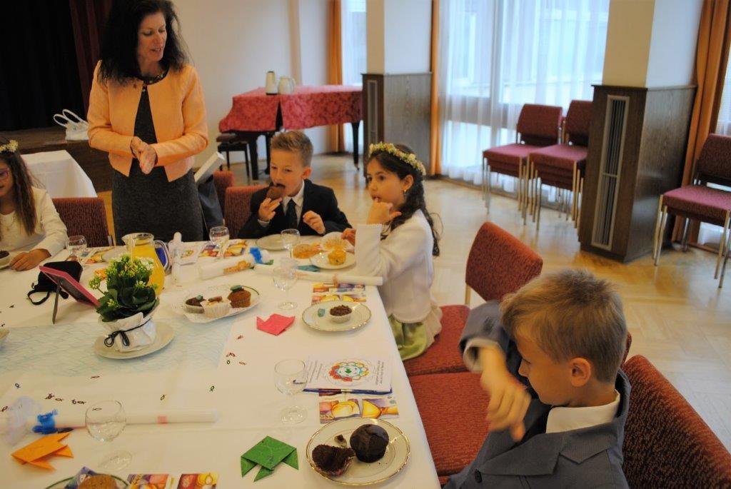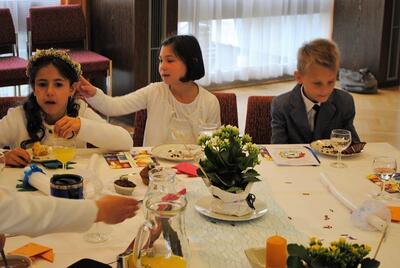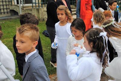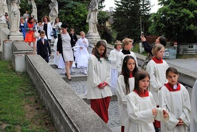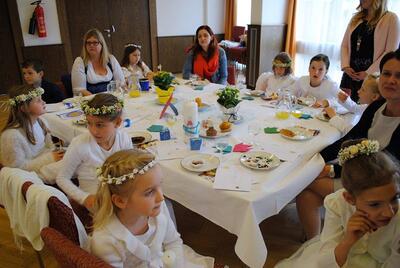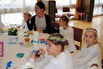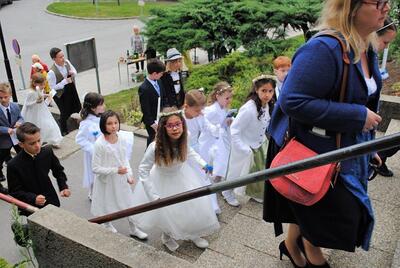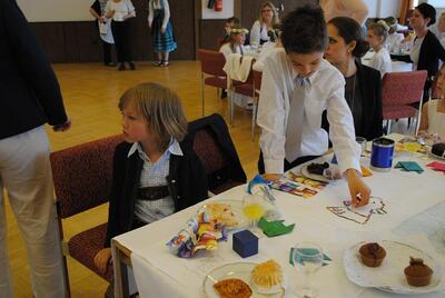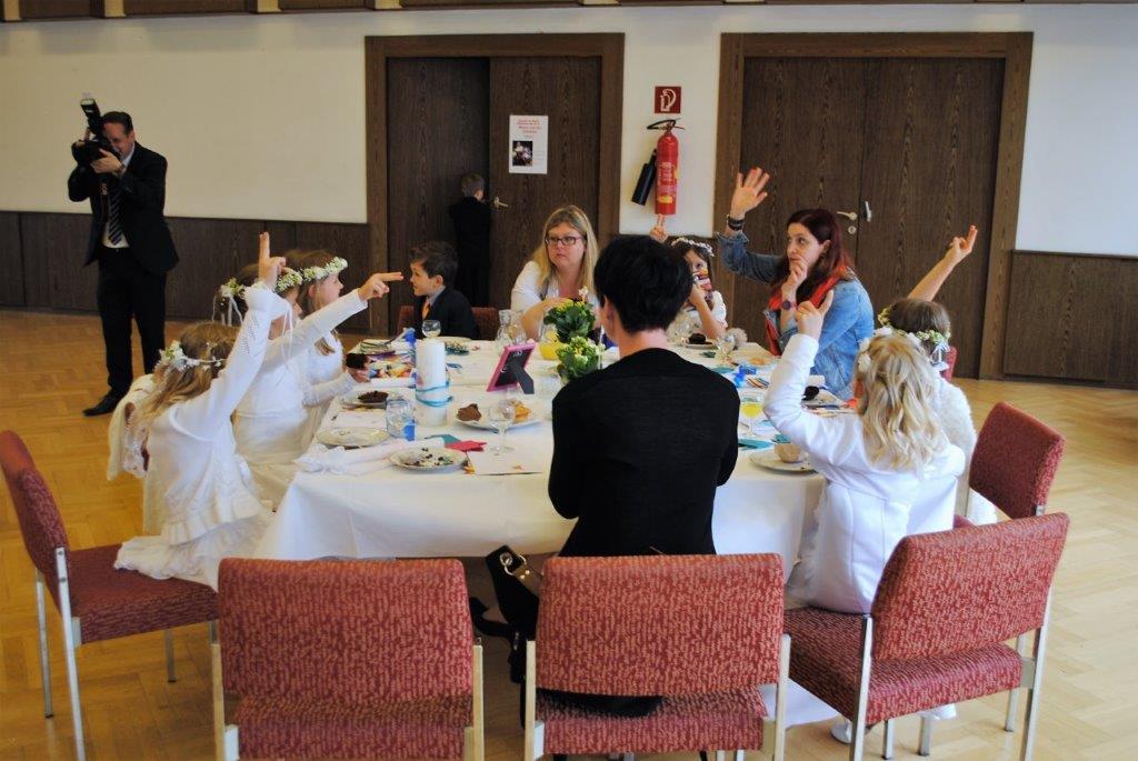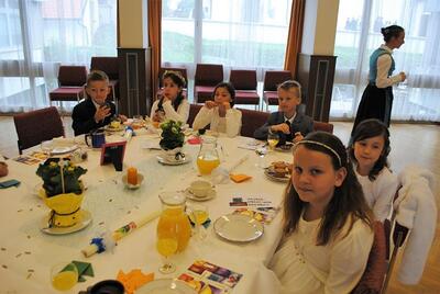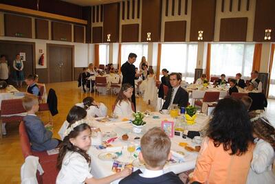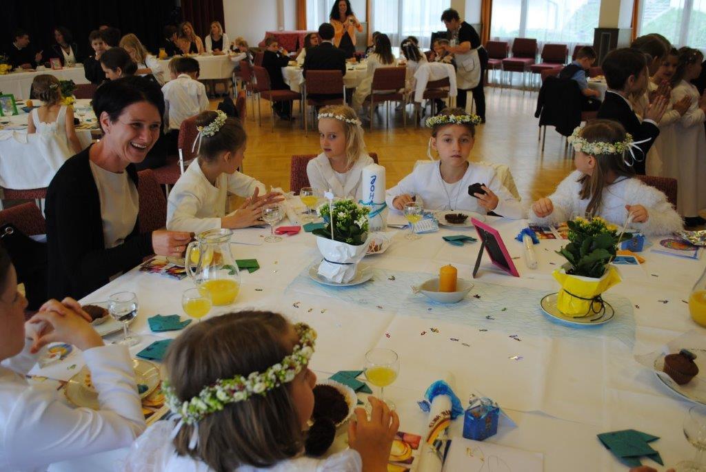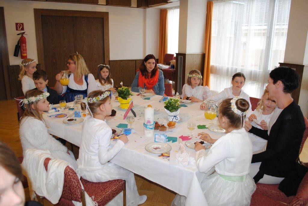 Zu Christi Himmelfahrt am 25. Mai 2017 feierte unsere Pfarre das Fest der Erstkommunion. Dabei empfingen 33 Kinder aus Wolkersdorf und Riedenthal erstmals die Hl. Kommunion.