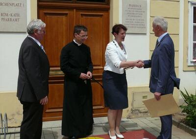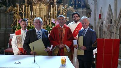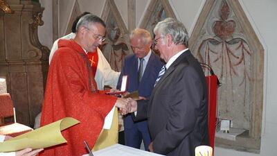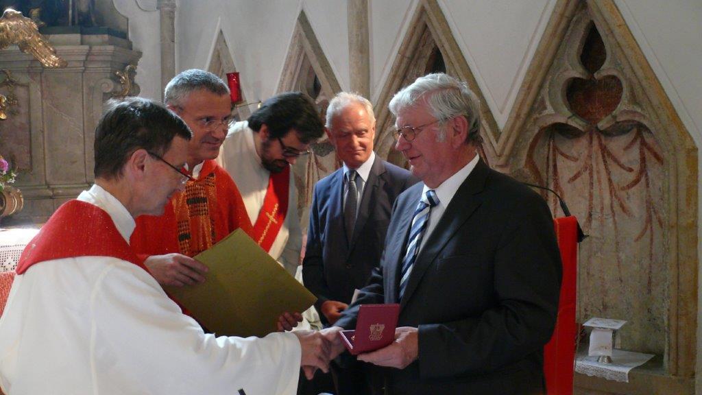 Im Anschluss an die Firmung verlieh Generalvikar Nikolaus Krasa am 4. Juni 2017 Franz Riepl und Edwin Bartl den Stephanusorden in Bronze. Edwin Bartl wirkte in den vergangenen zehn Jahre mit unermüdlichem Einsatz als stellvertretender Vorsitzender unseres Pfarrgemeinderates. Franz Riepl stellt unserer Pfarre über viele Jahre hinweg sein außergewöhnliches handwerkliches Geschick zur Verfügung.