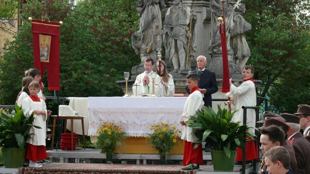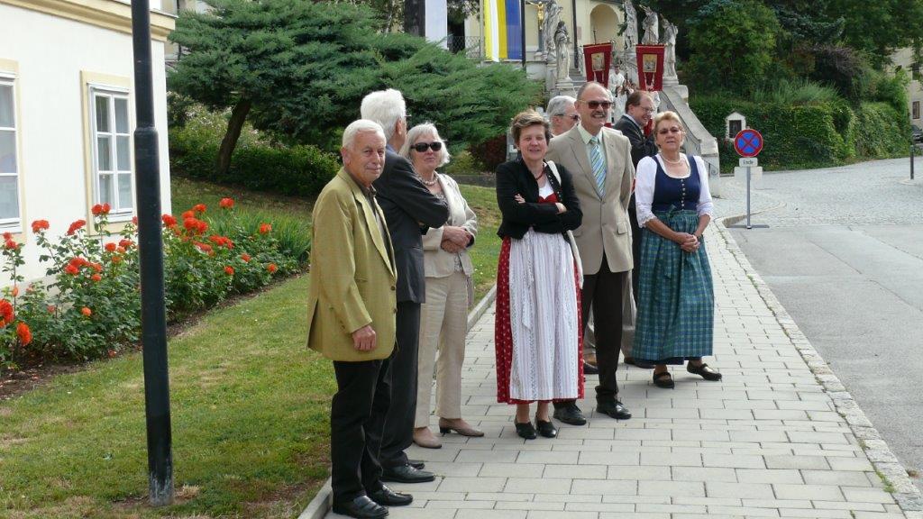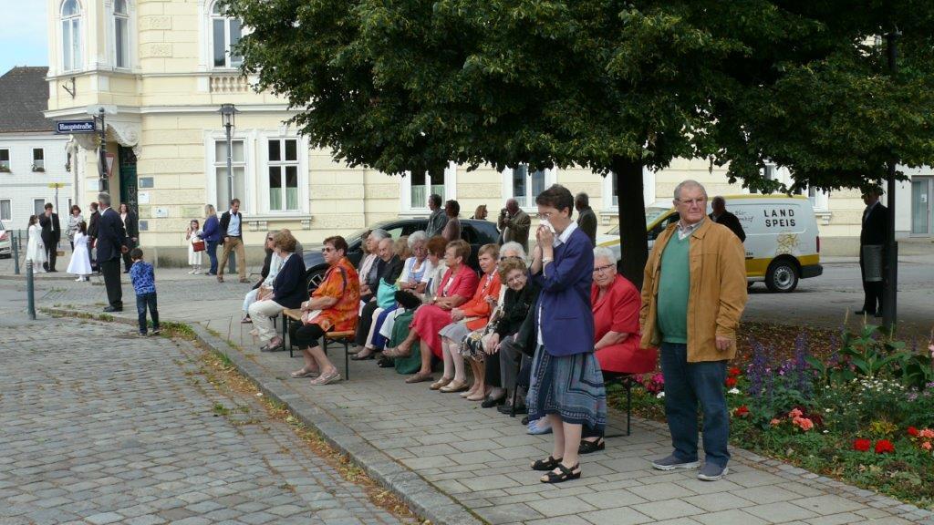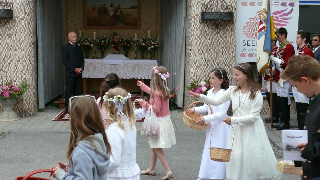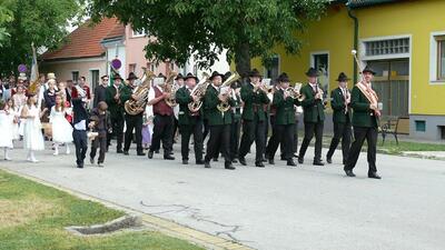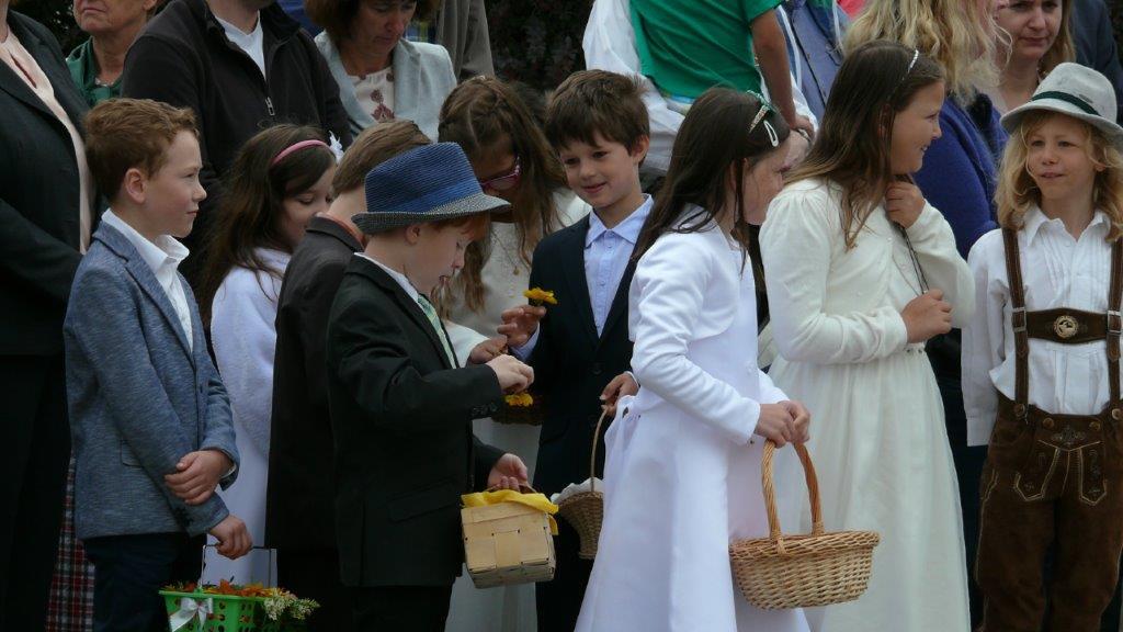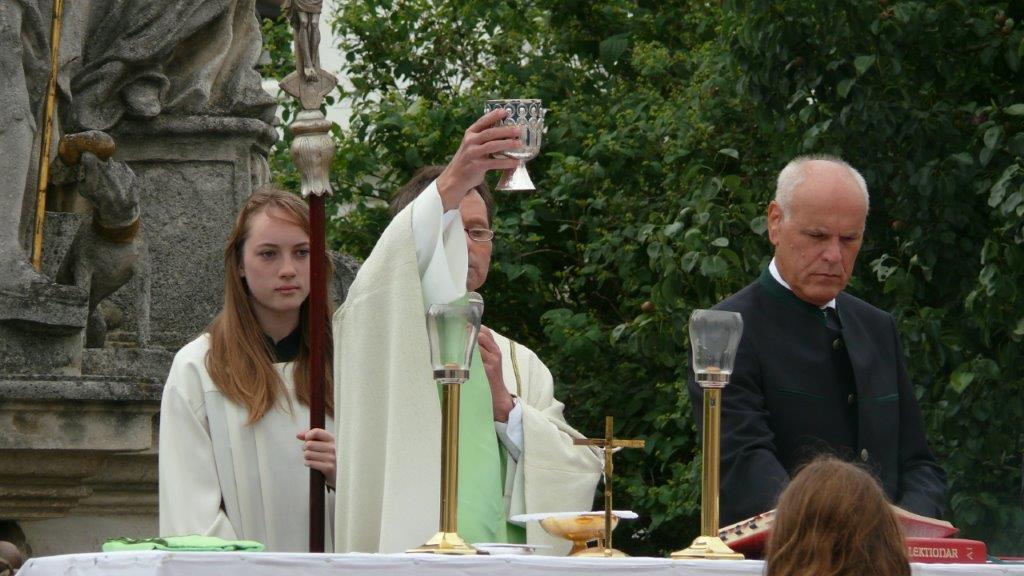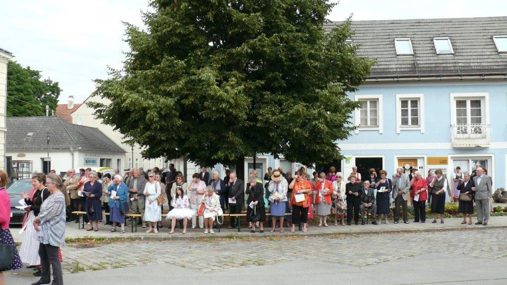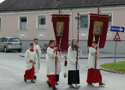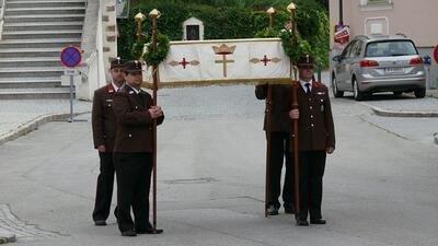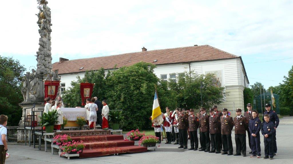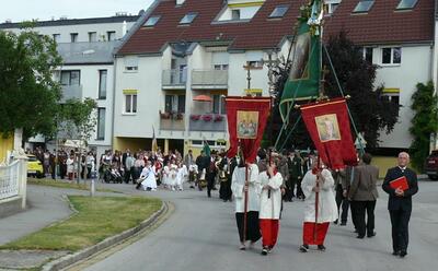 Bei schönem Wetter konnte die Monstranz mit dem Allerheiligsten begleitet von den Ministranten, den Erstkommunionskindern, den Blumenkindern, der Feuerwehr, der Blasmusik, der Studentenverbindung Herulia, den Hauerburschen mit der Hauerfahne, den Vertretern von Pfarre und Gemeinde, den Mitgliedern des Kameradschaftsbundes und den Gläubigen durch den Ort getragen werden.