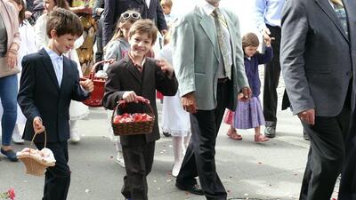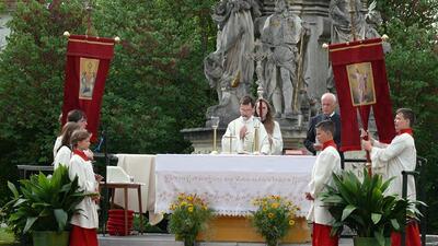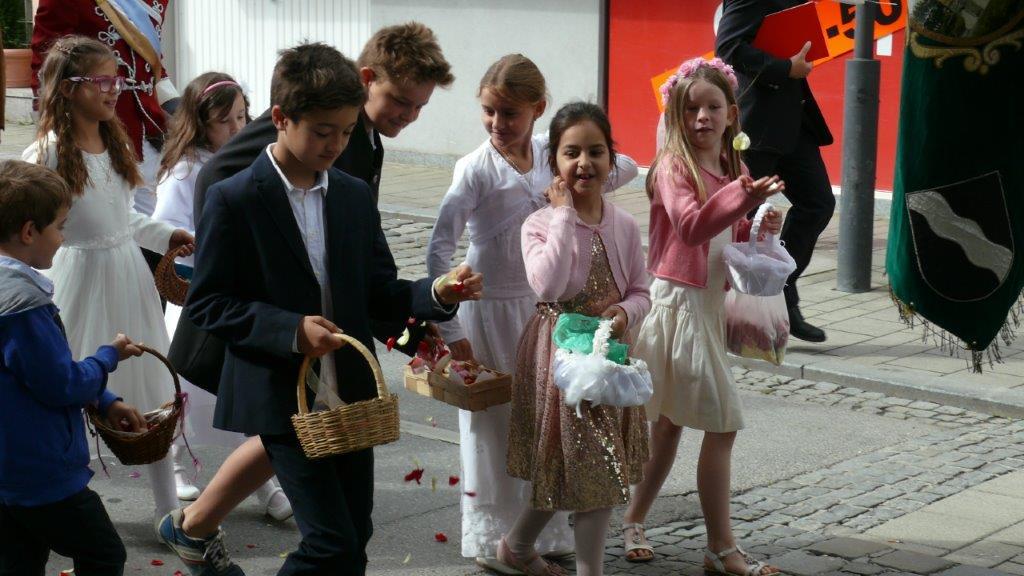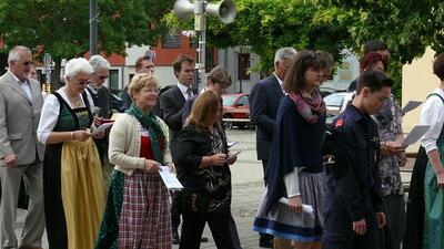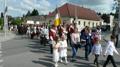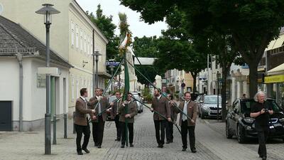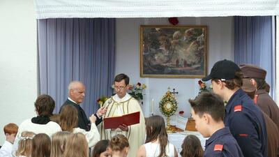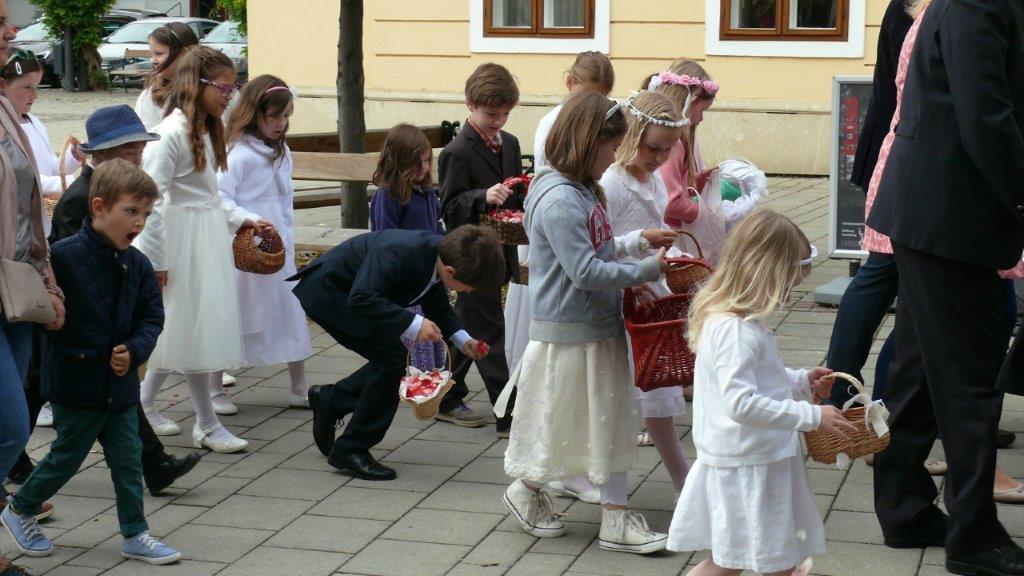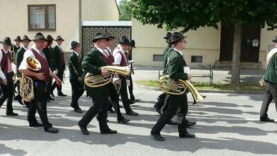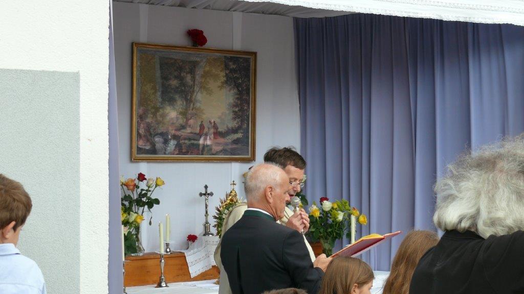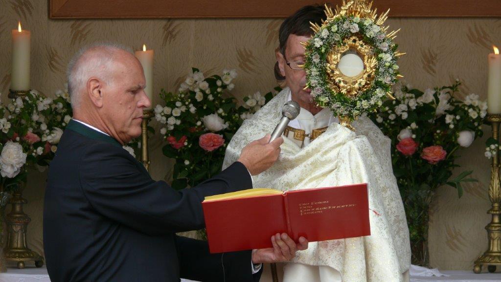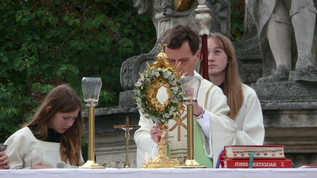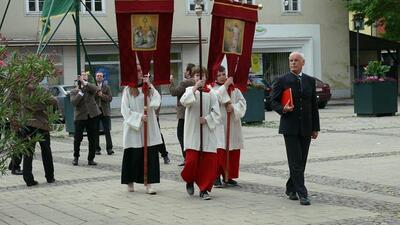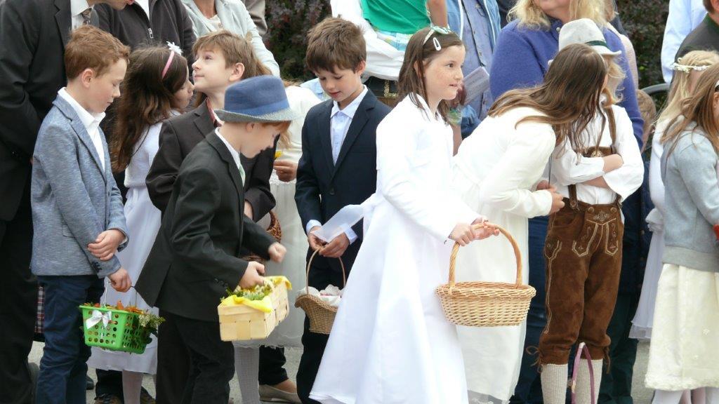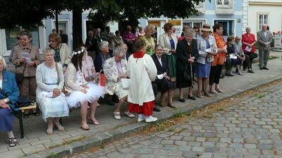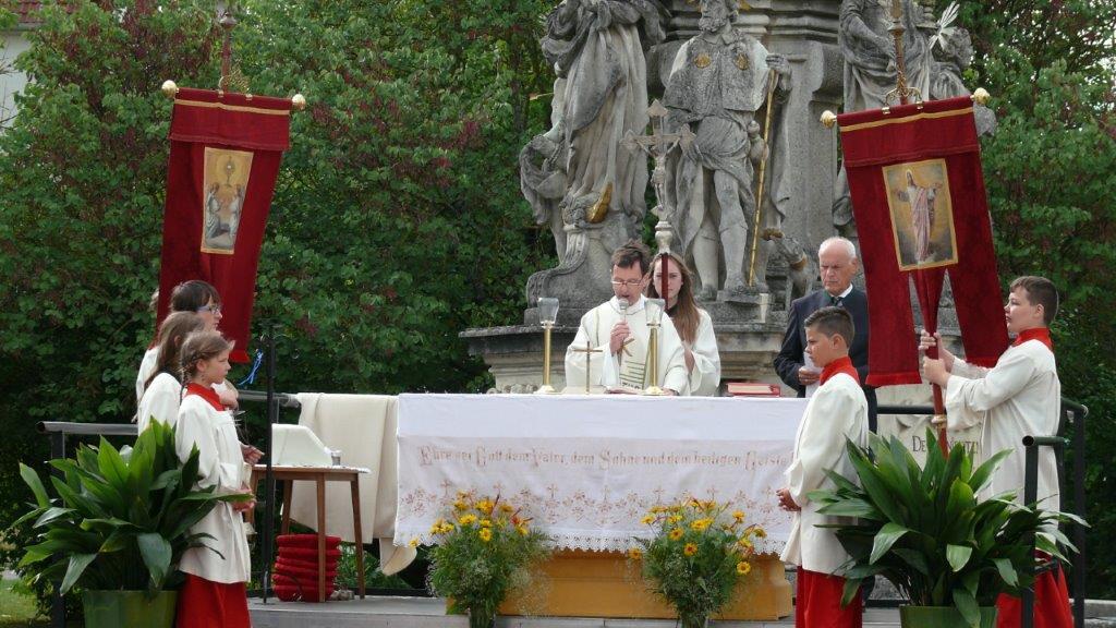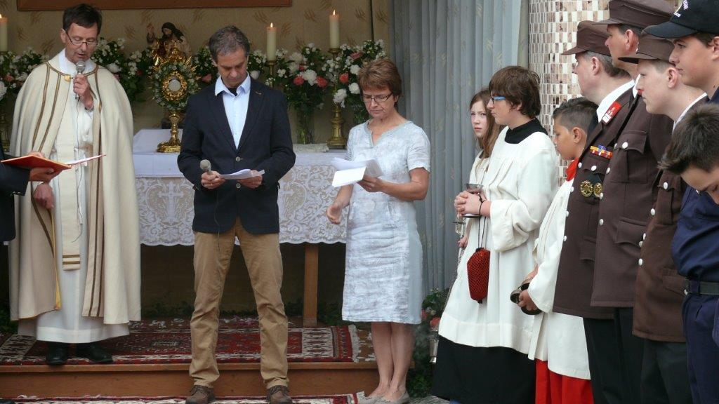 Bei schönem Wetter konnte die Monstranz mit dem Allerheiligsten begleitet von den Ministranten, den Erstkommunionskindern, den Blumenkindern, der Feuerwehr, der Blasmusik, der Studentenverbindung Herulia, den Hauerburschen mit der Hauerfahne, den Vertretern von Pfarre und Gemeinde, den Mitgliedern des Kameradschaftsbundes und den Gläubigen durch den Ort getragen werden.