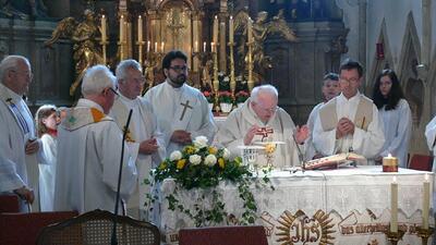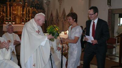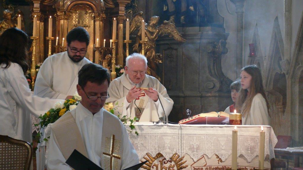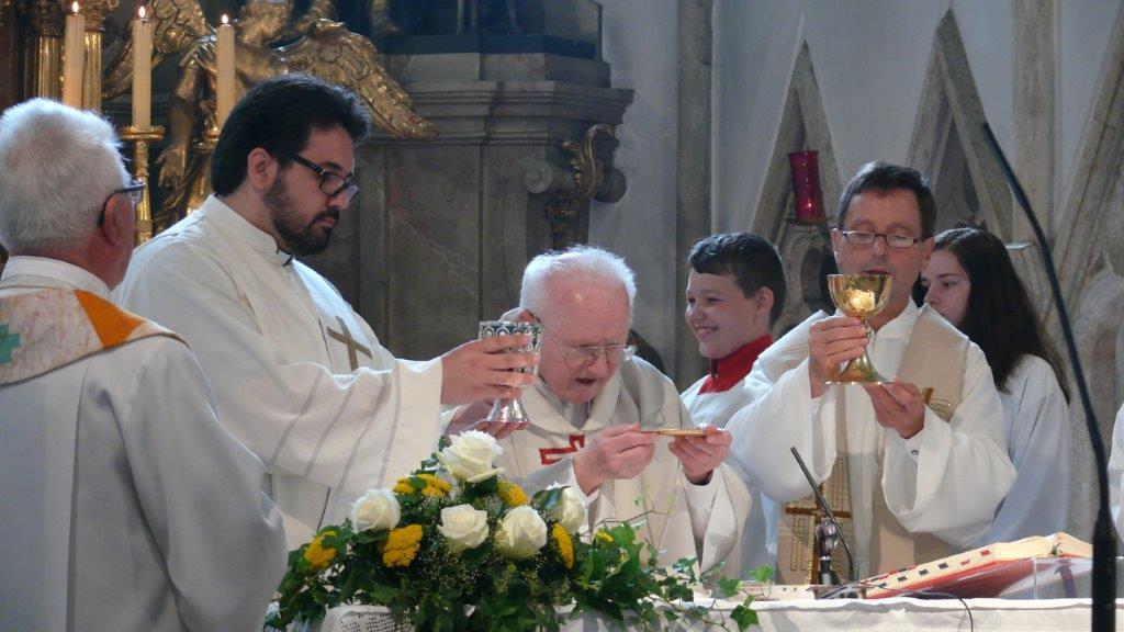 Am Sonntag, 25. Juni 2017, feierten wir in unserer Pfarrrkirche ein seltenes Jubiläum. Unser ehemaliger Stadtpfarrer Prälat Dr. Franz Führer ist 60 Jahre Priester (diamantenes Priesterjubiläum).