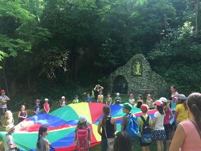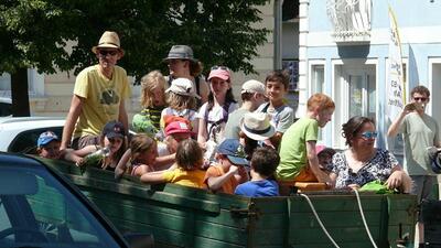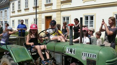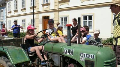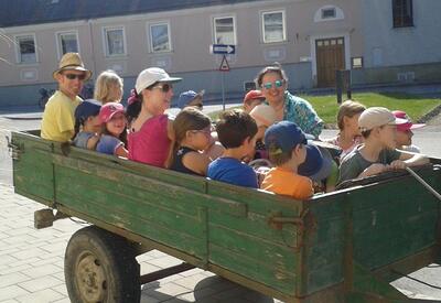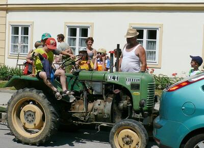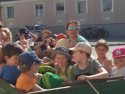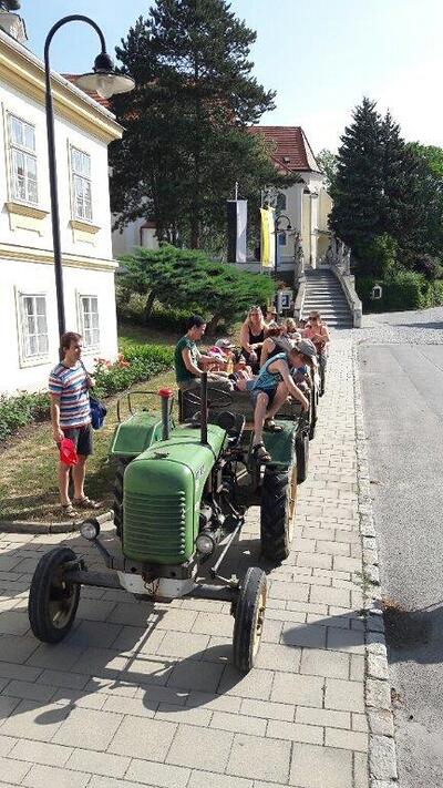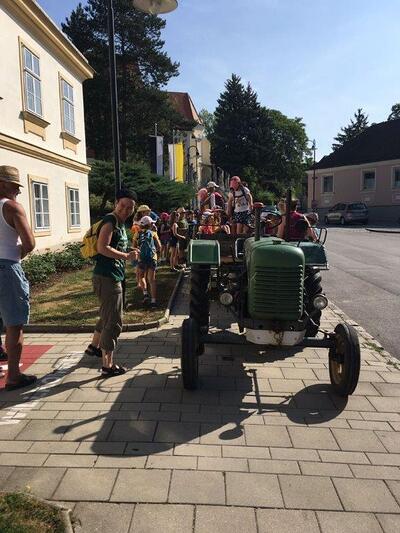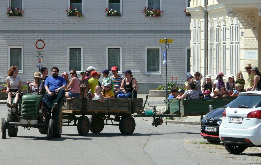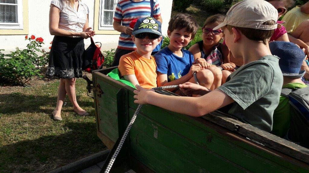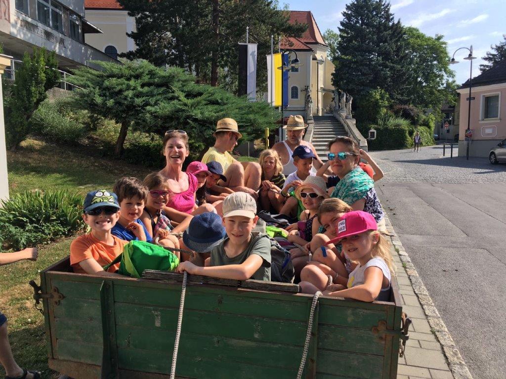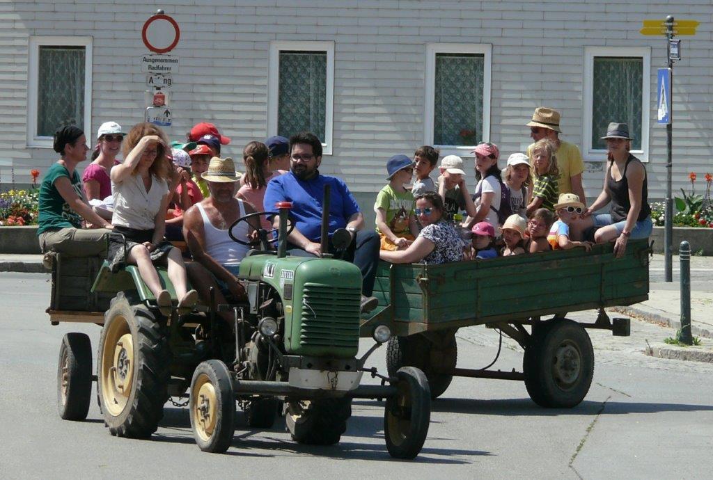 Am Samstag, 24. 6. 2017, machten unsere Erstkommunionkinder einen Ausflug mit dem Traktor zur Lourdes-Grotte in Münichsthal.