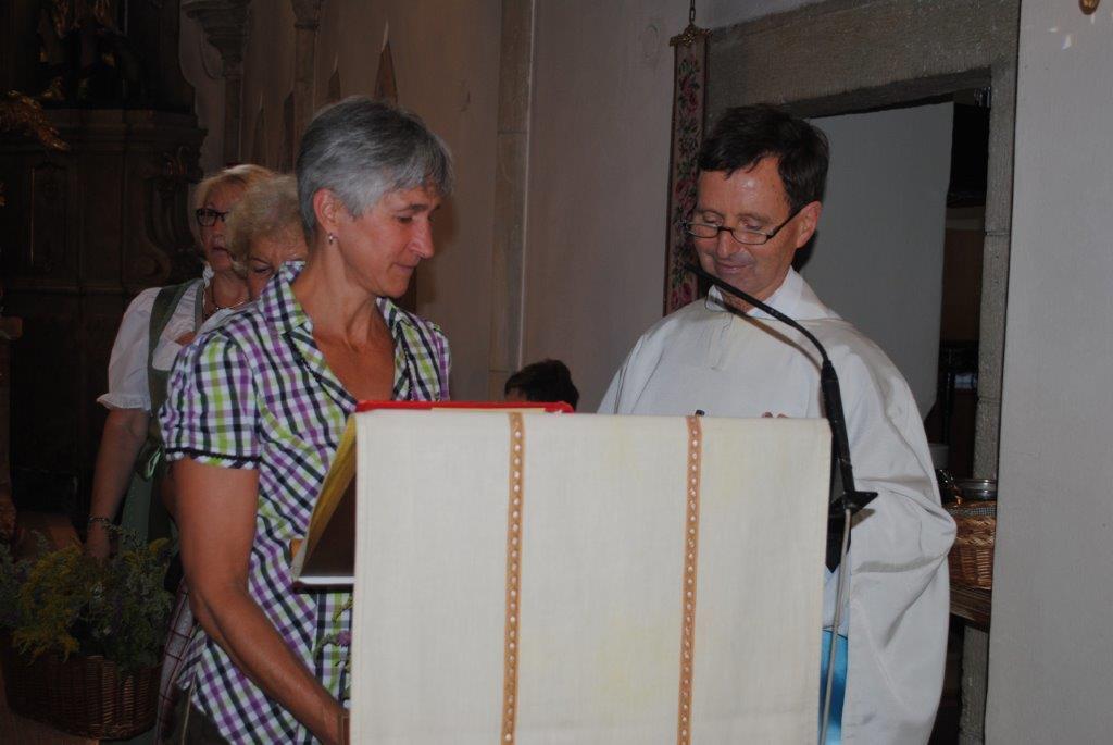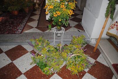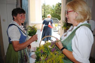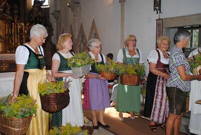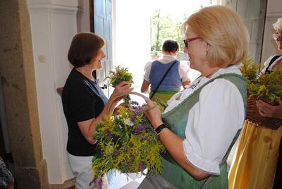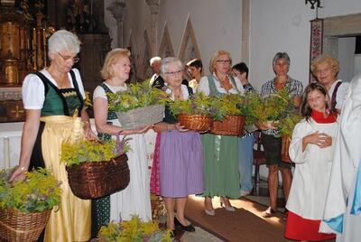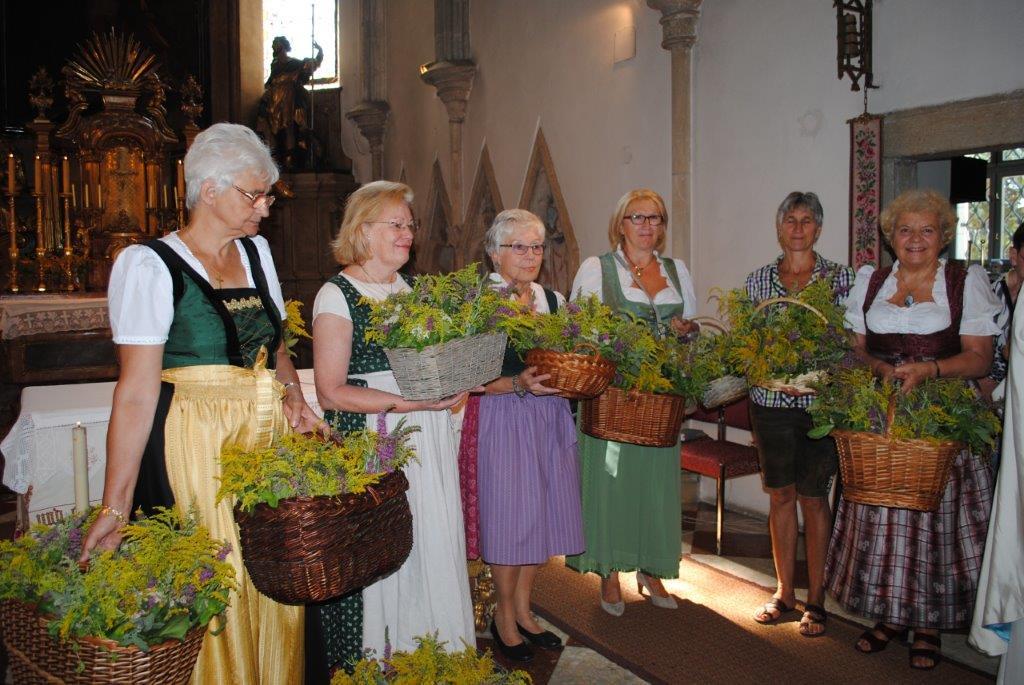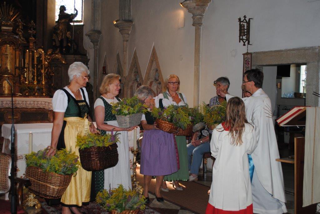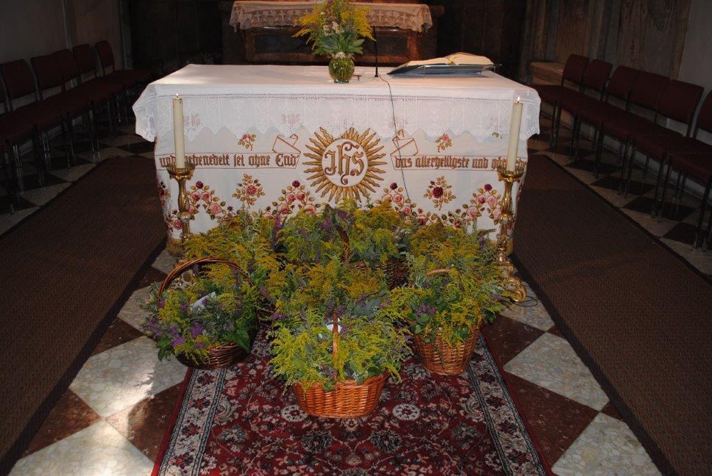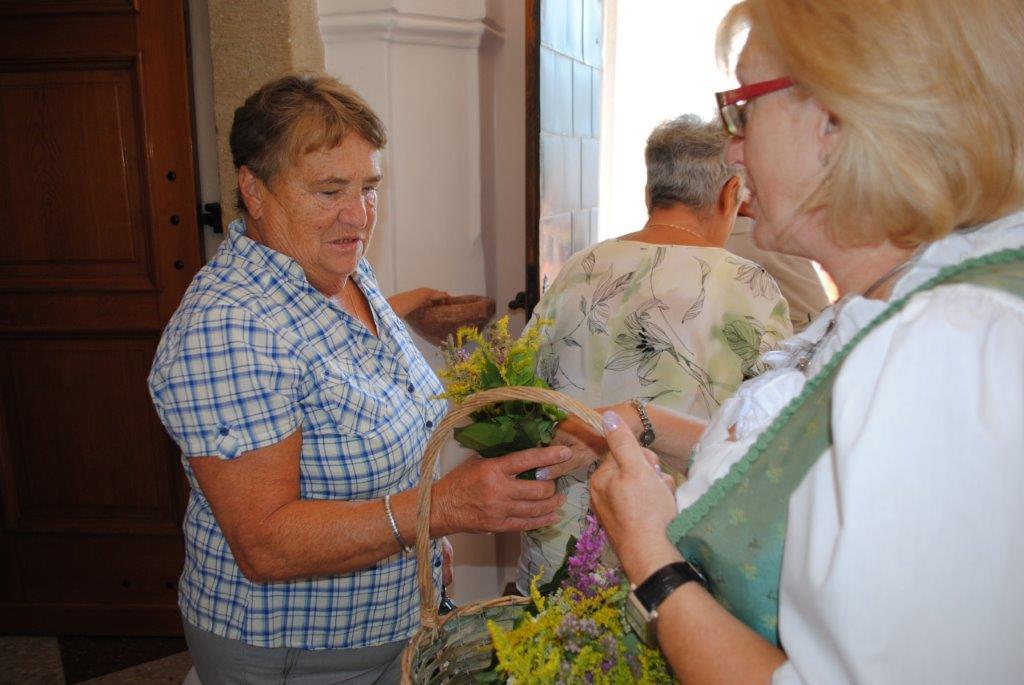 Im Anschluss an die Kräutersegnung werden diese bei den Kirchenausgängen an die Messbesucherinnen und -besucher verteilt. Die gesegneten Kräuter sollen Gottes Segen in die Häuser und Wohnungen bringen. Vielen Dank an die Frauen, die wie jedes Jahr die schönen Kräutersträuße gebunden haben.