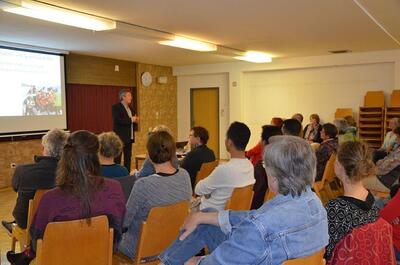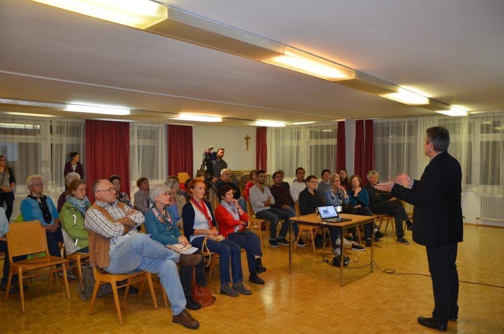 Rainald Tippow führte an diesem Abend in die vielfältigen Herausforderungen, aber auch Chancen in der Frage der Integration von Flüchtlingen ein. Anschließend wurden Fragen diskutiert und Erfahrungen in der Betreuung und Integration von Flüchtlingen geteilt. Der Vortrag fand in Kooperation mit der Leader-Region Weinviertel-Ost und dem Verein Flüchtlingshilfe Wolkersdorf statt. Auch der ORF war dabei und hat einige der Besucher interviewt.