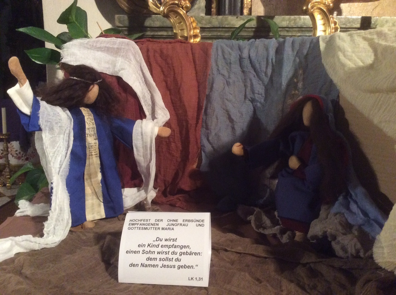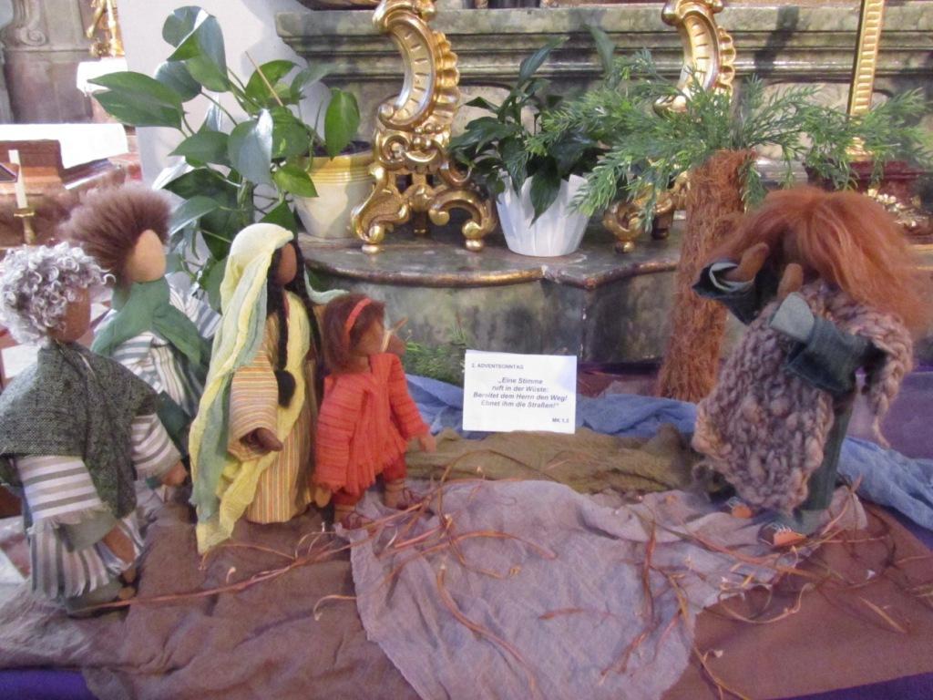 Beim Marienaltar werden an den Sonntagen des Advents und der Weihnachtszeit Szenen zum Evangelium mit biblischen Erzählfiguren gestellt. Die Darststellungen laden zum Betrachten, Meditieren und Verinnerlichen des Wortes Gottes ein.
