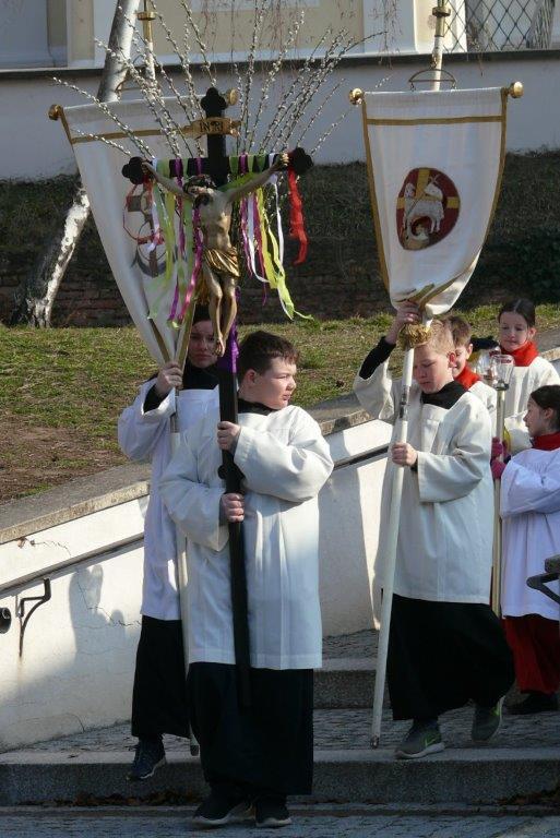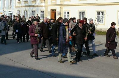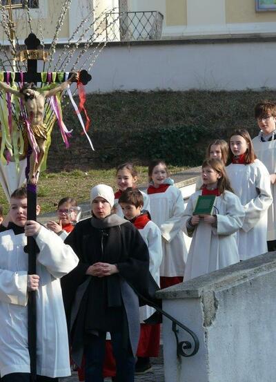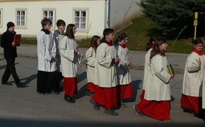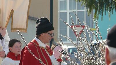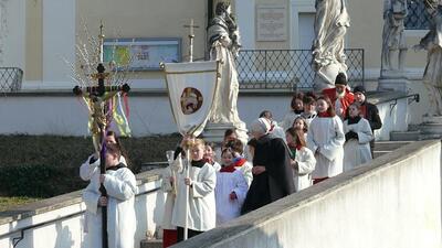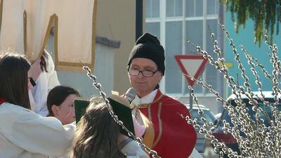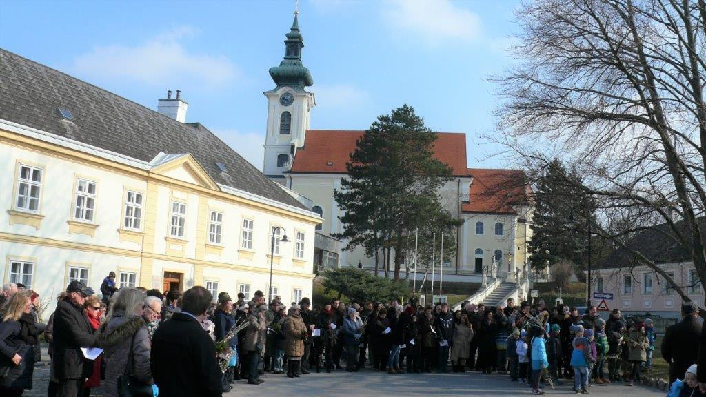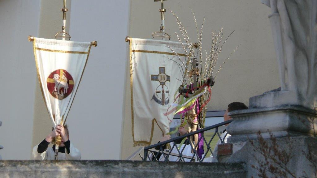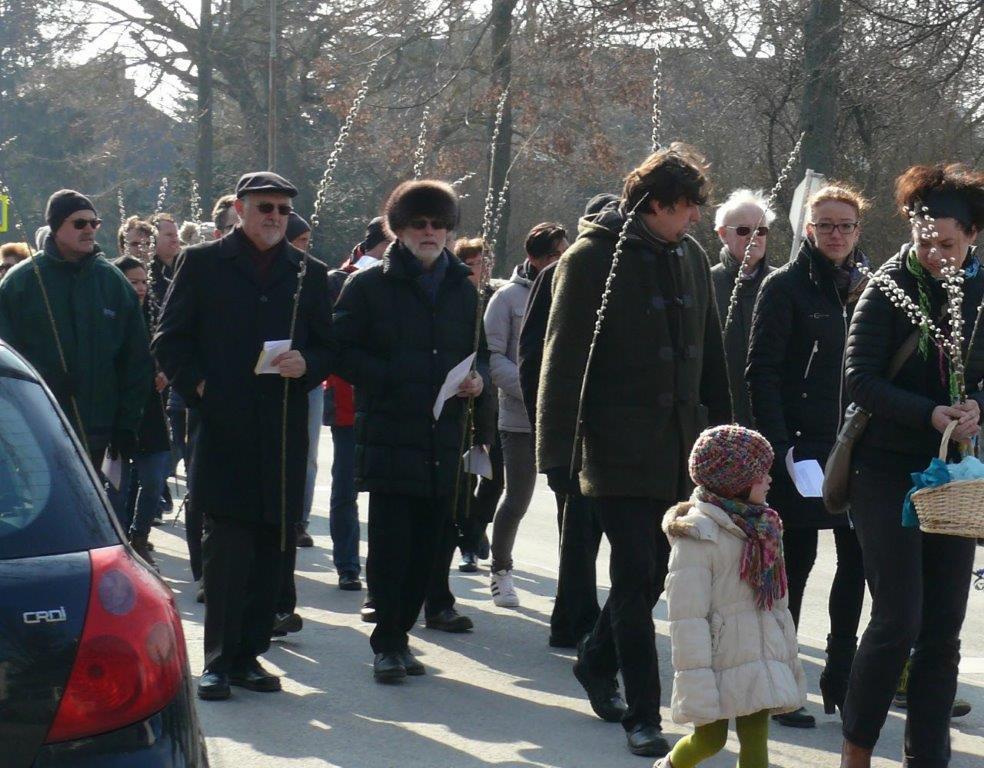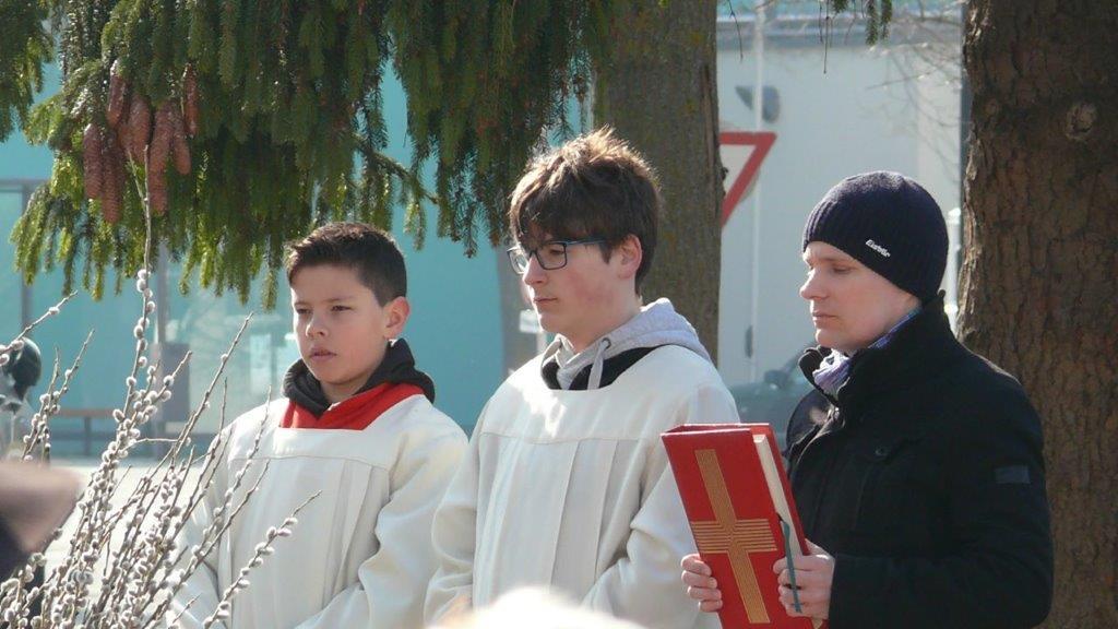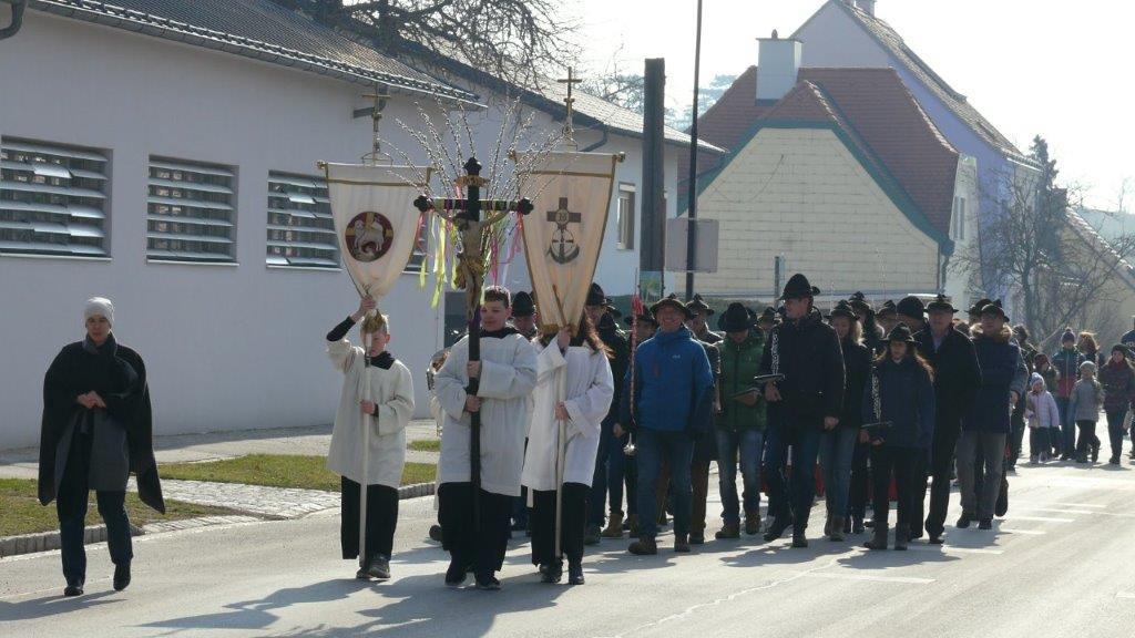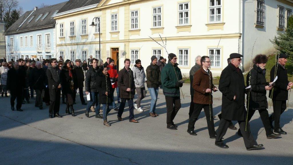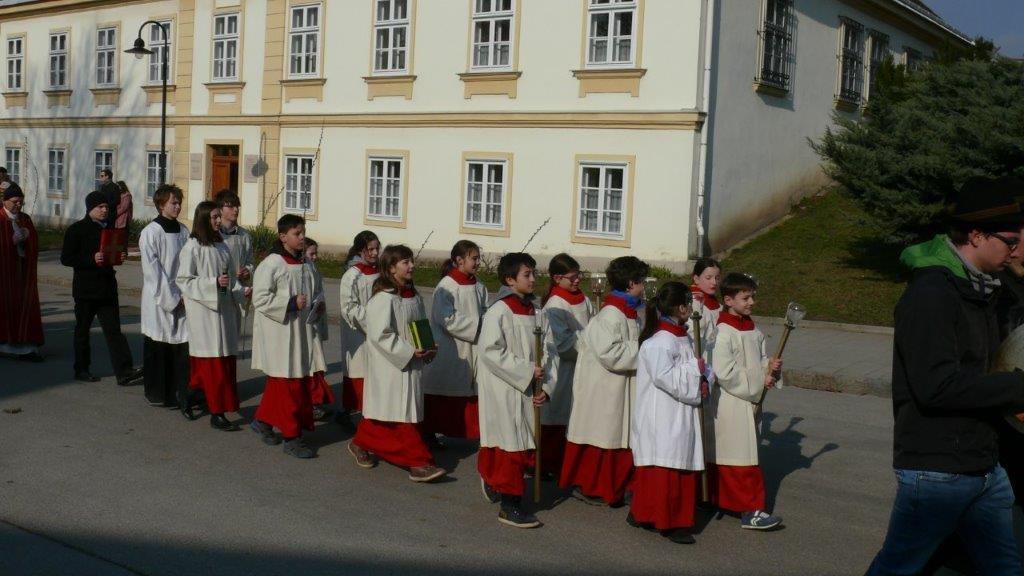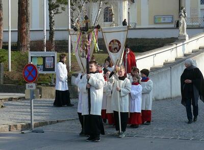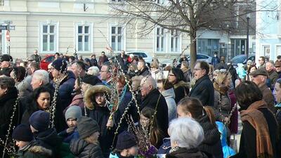 Zahlreiche Gläubige nahmen trotz Wind und Kälte am Palmsonntag an der Palmweihe am Kirchenplatz teil. Nach einem Umzug durch die Friedhofsgasse und einen kleinen Teil der Kaiser Josef-Straße feierten wir ein festliches Hochamt.