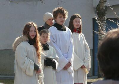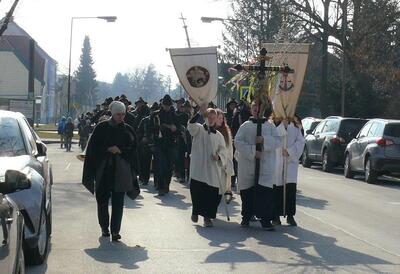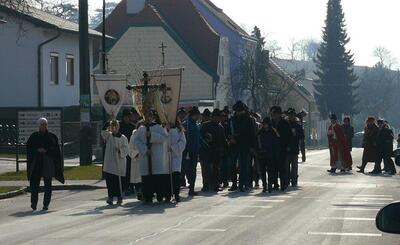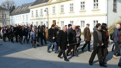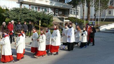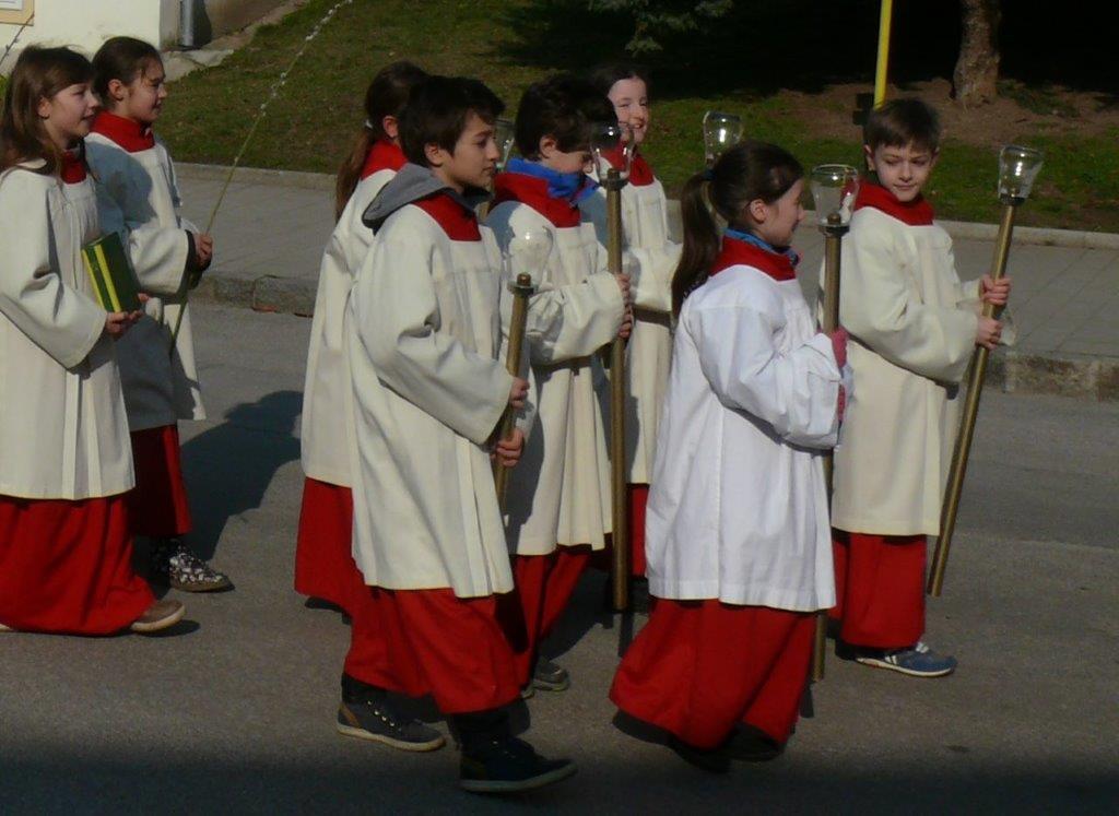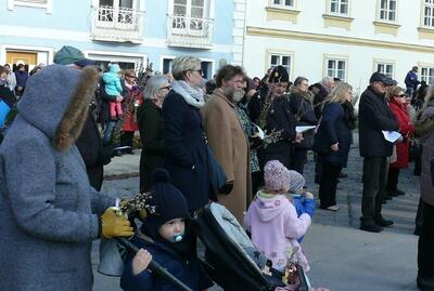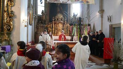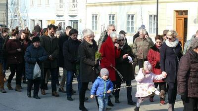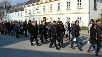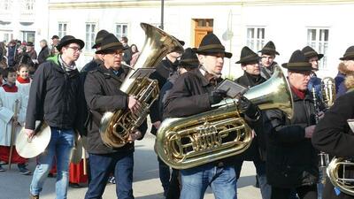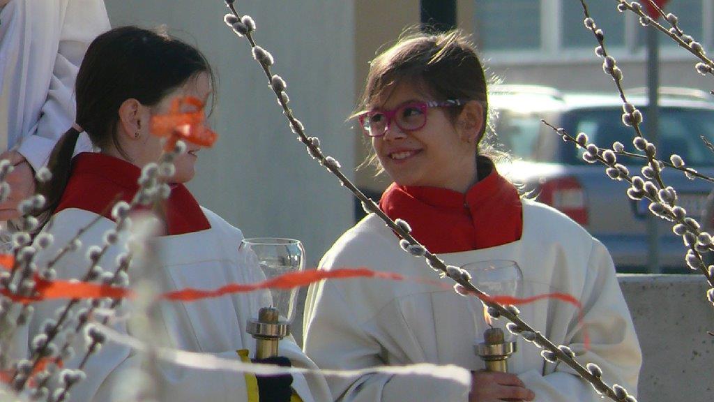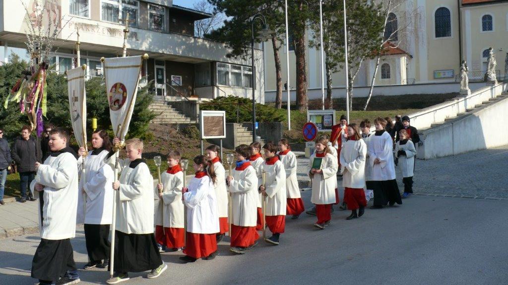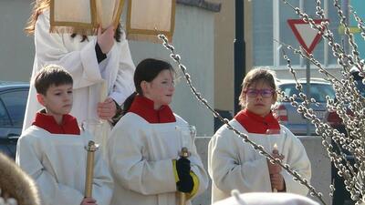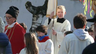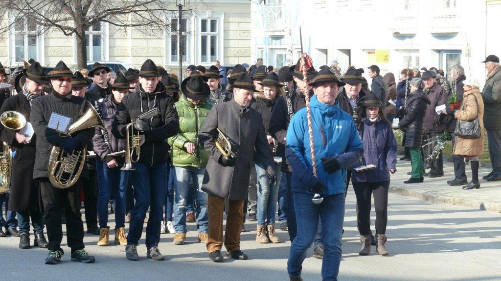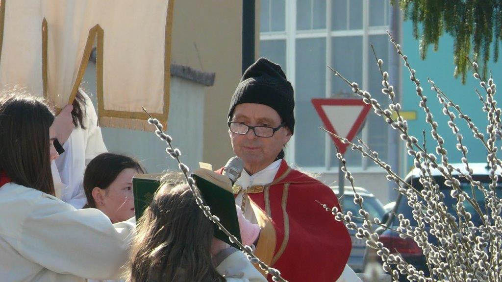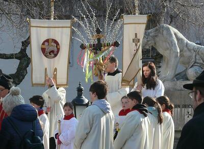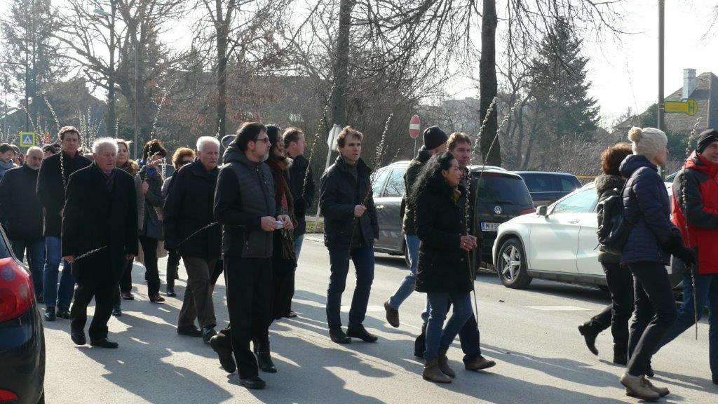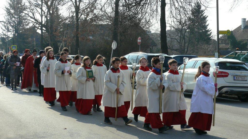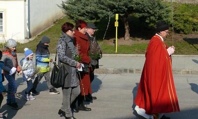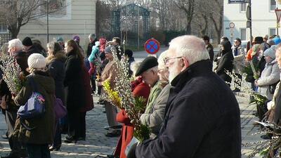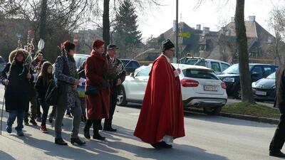 Zahlreiche Gläubige nahmen trotz Wind und Kälte am Palmsonntag an der Palmweihe am Kirchenplatz teil. Nach einem Umzug durch die Friedhofsgasse und einen kleinen Teil der Kaiser Josef-Straße feierten wir ein festliches Hochamt.