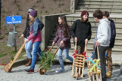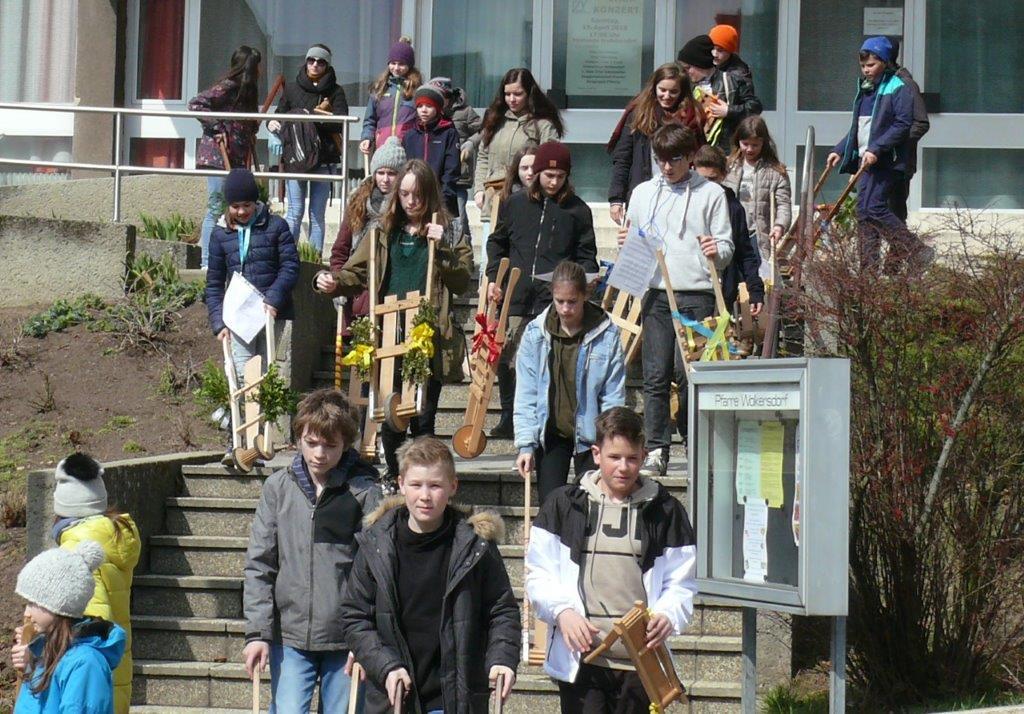 Das Ratschen vor Ostern erfreut sich großer Beliebtheit. Mehr als vierzig Ratschenkinder mit ihren Begleitern und Begleiterinnen sind heuer in Wolkersdorf unterwegs.