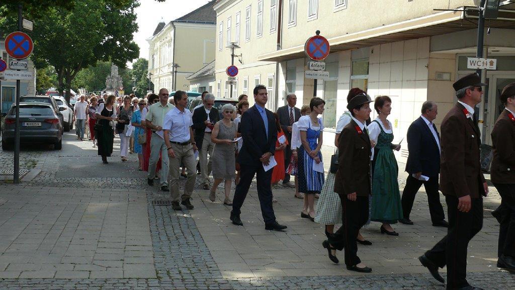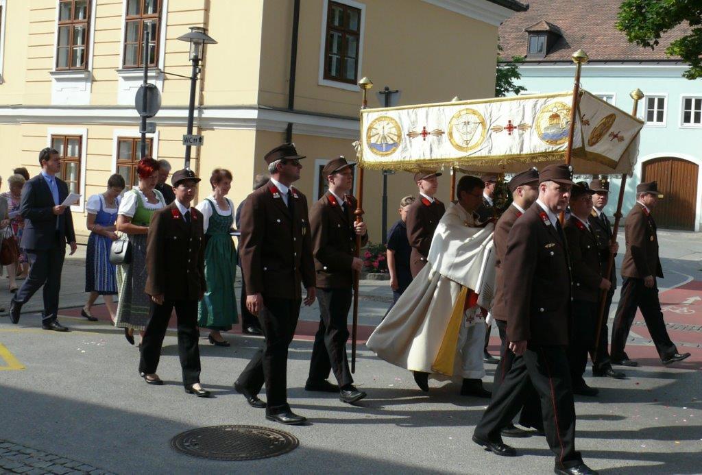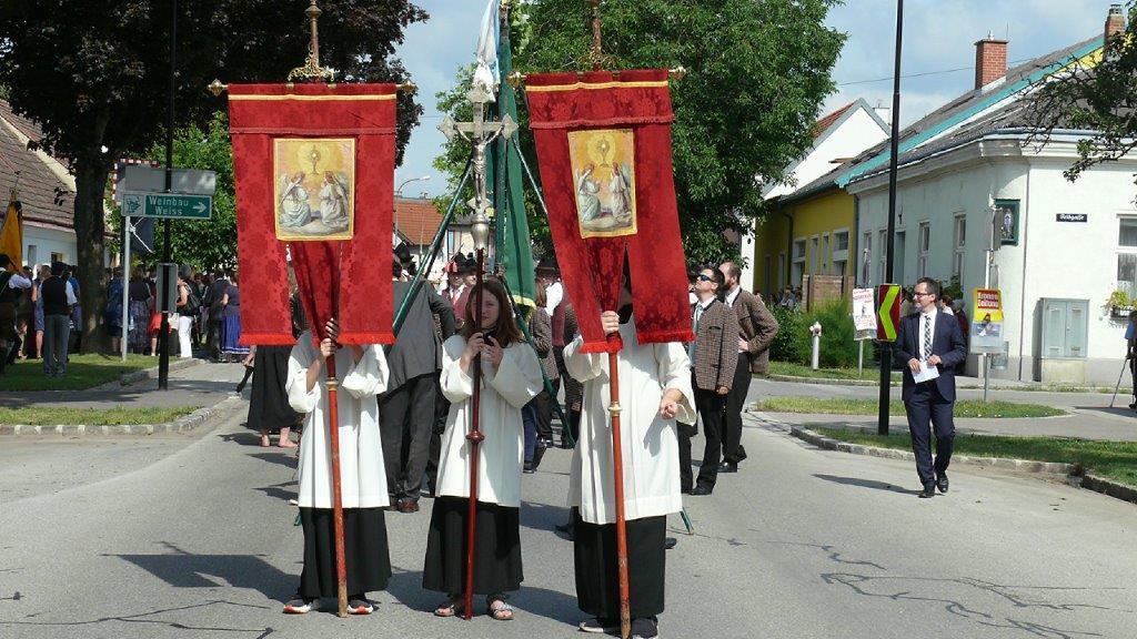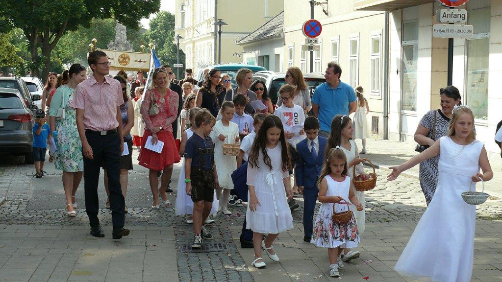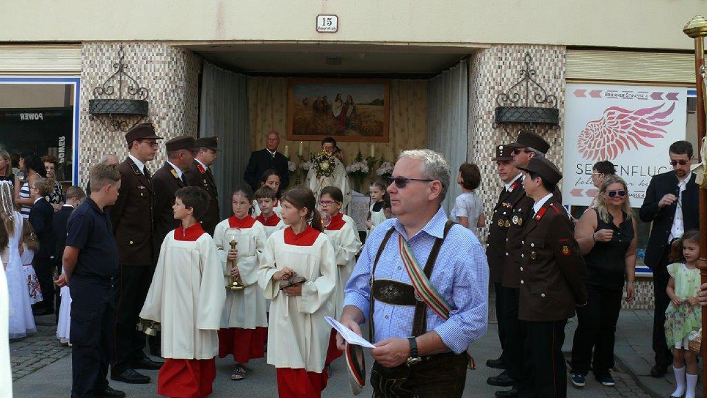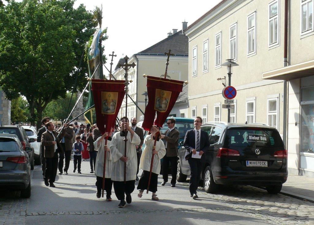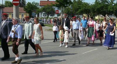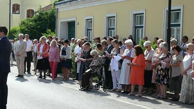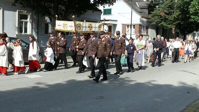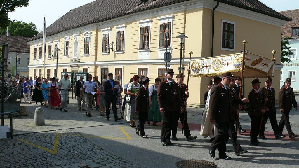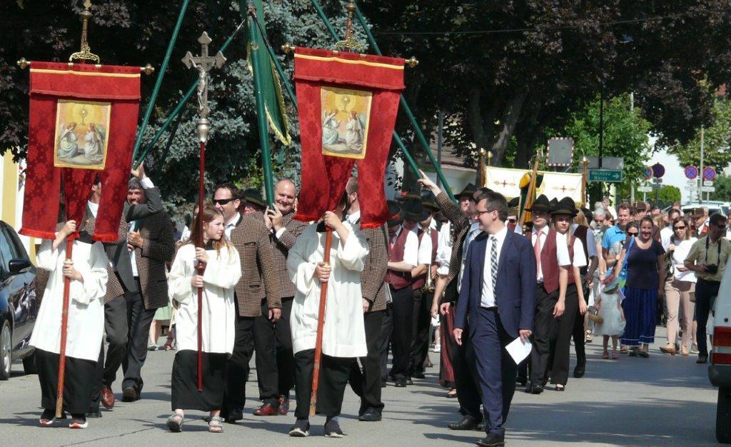 Auch heuer führte die Fronleichnamsprozession durch Hauptstraße, Adlergasse, Klostergasse und Kaiser Josef Straße zur Kirche. Eine Agape bei prächtigem Wetter rundete das festliche Ereignis ab.