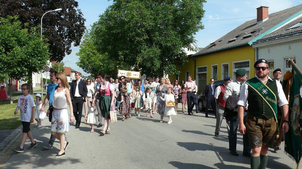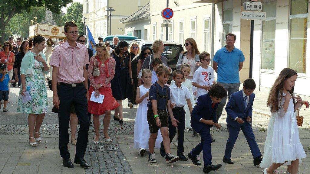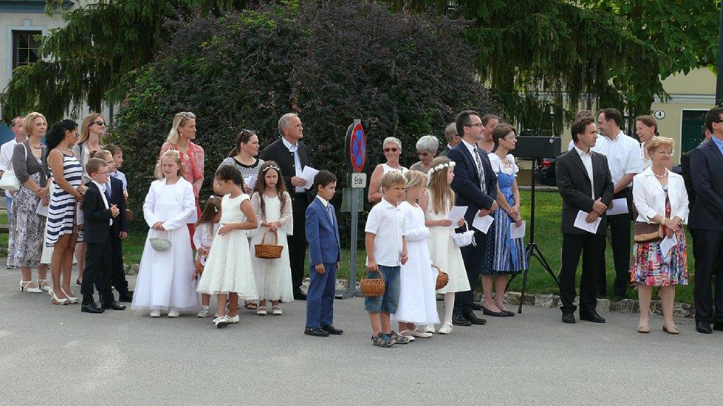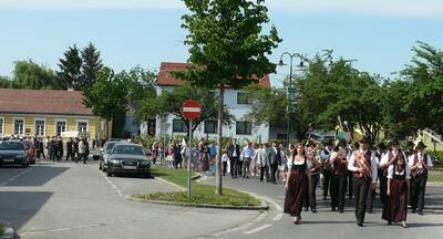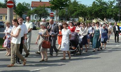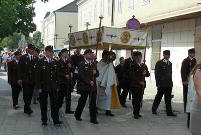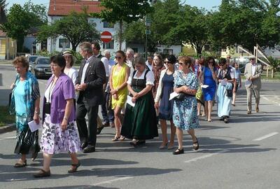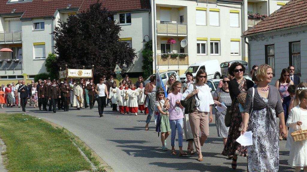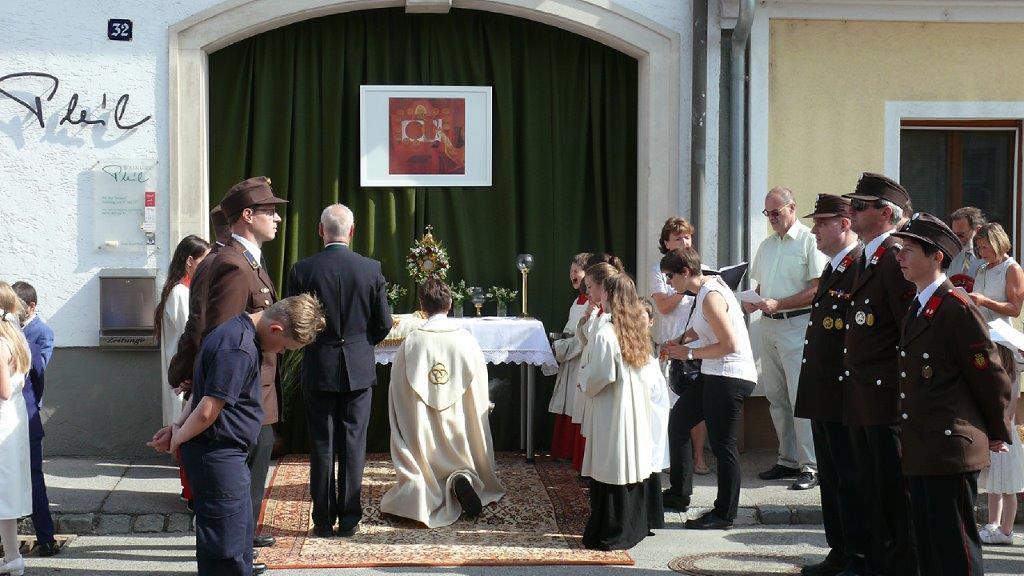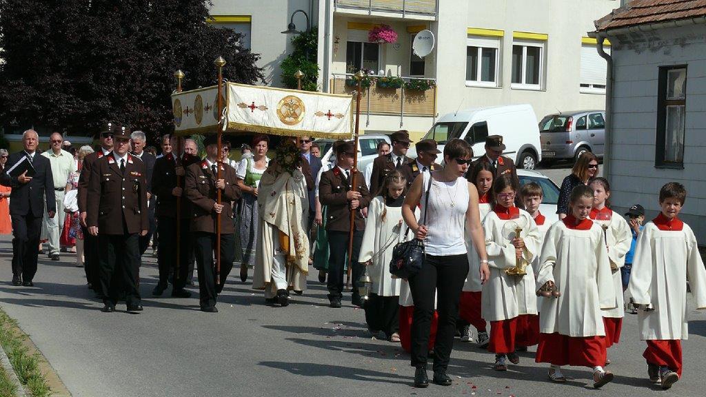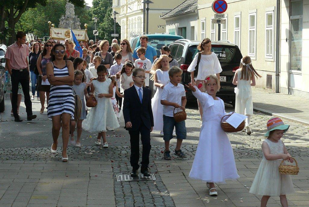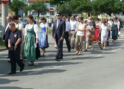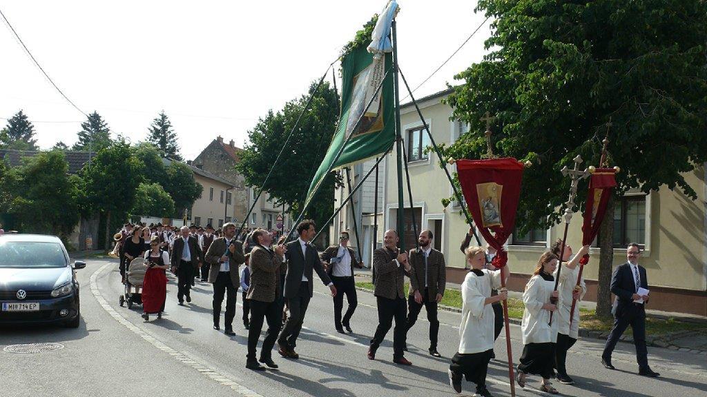 Auch heuer führte die Fronleichnamsprozession durch Hauptstraße, Adlergasse, Klostergasse und Kaiser Josef Straße zur Kirche. Eine Agape bei prächtigem Wetter rundete das festliche Ereignis ab.