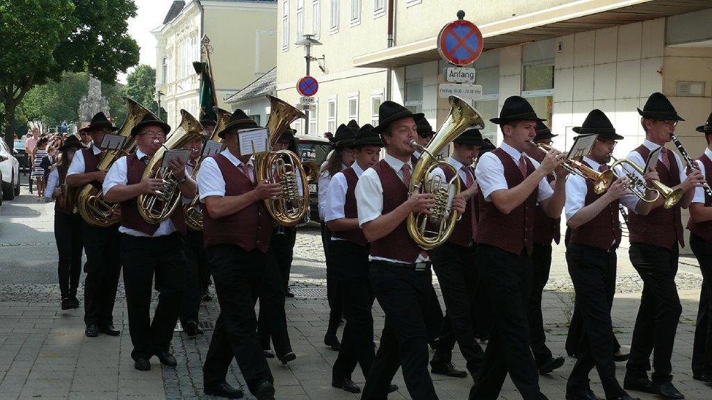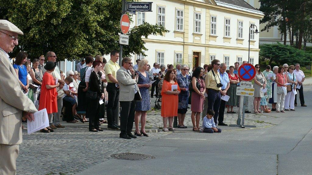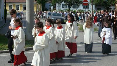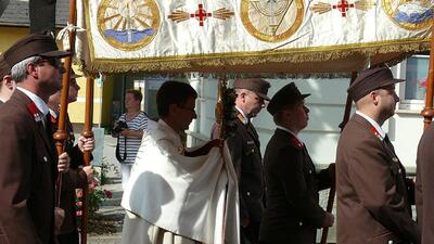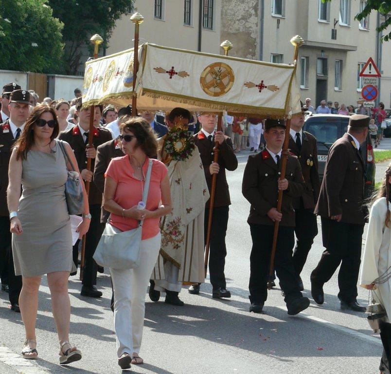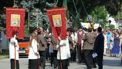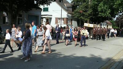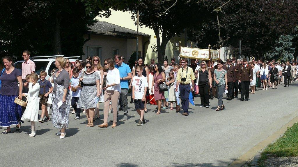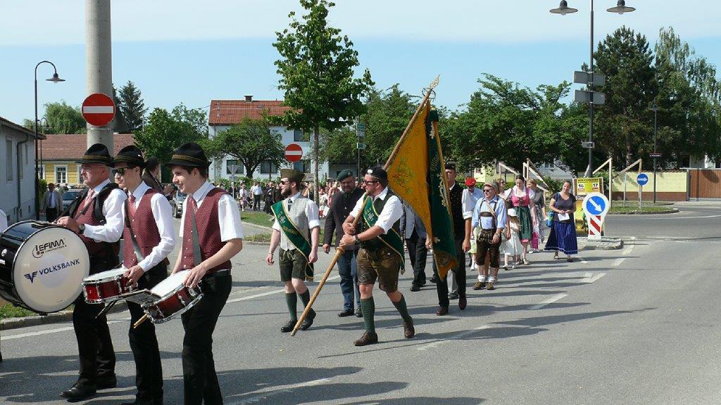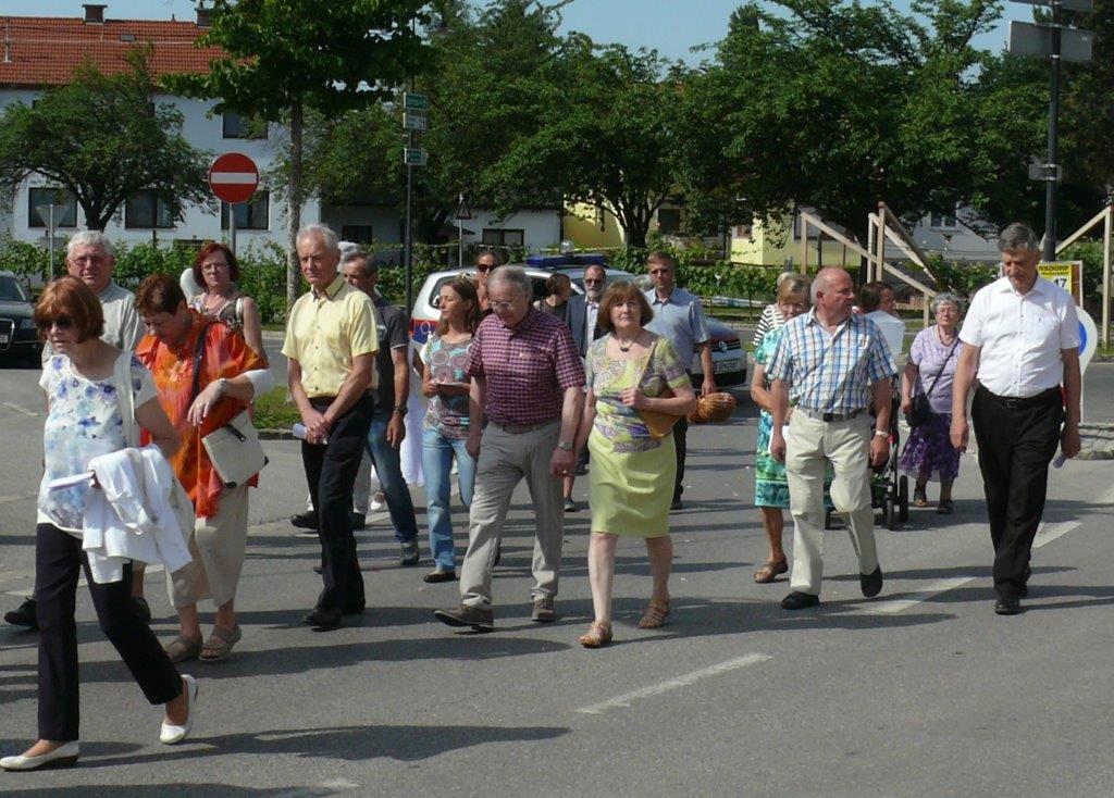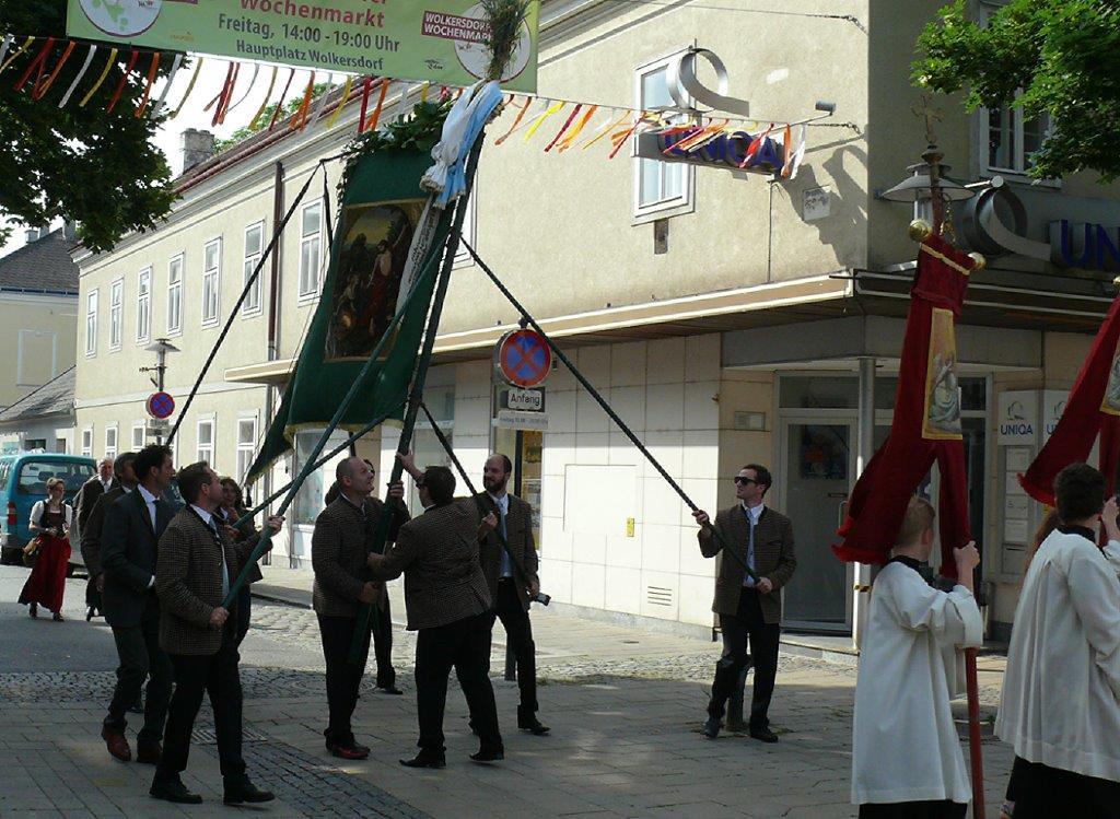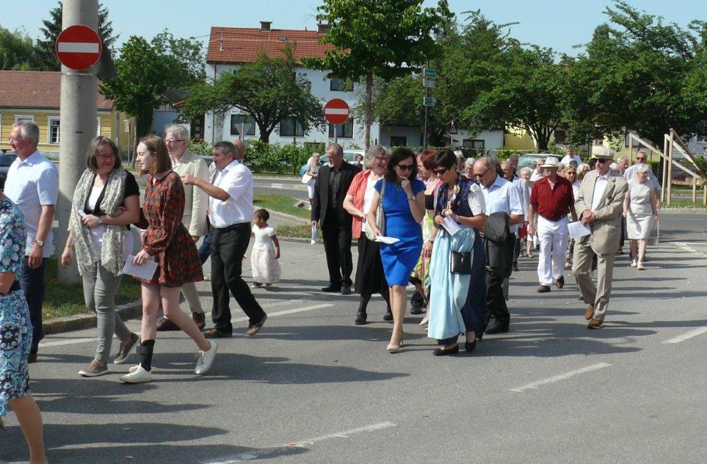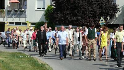Auch heuer führte die Fronleichnamsprozession durch Hauptstraße, Adlergasse, Klostergasse und Kaiser Josef Straße zur Kirche. Eine Agape bei prächtigem Wetter rundete das festliche Ereignis ab.