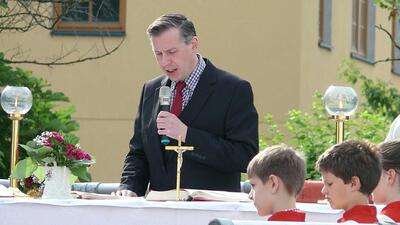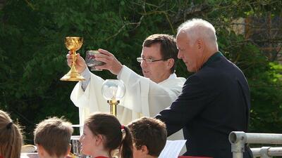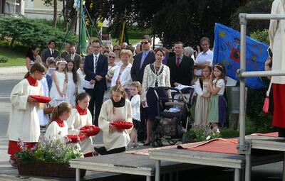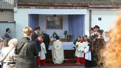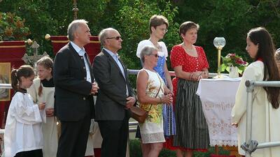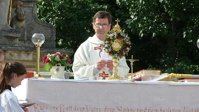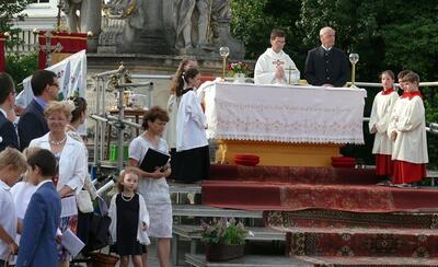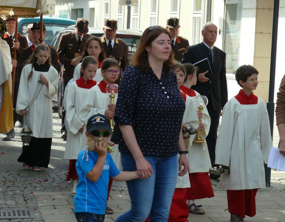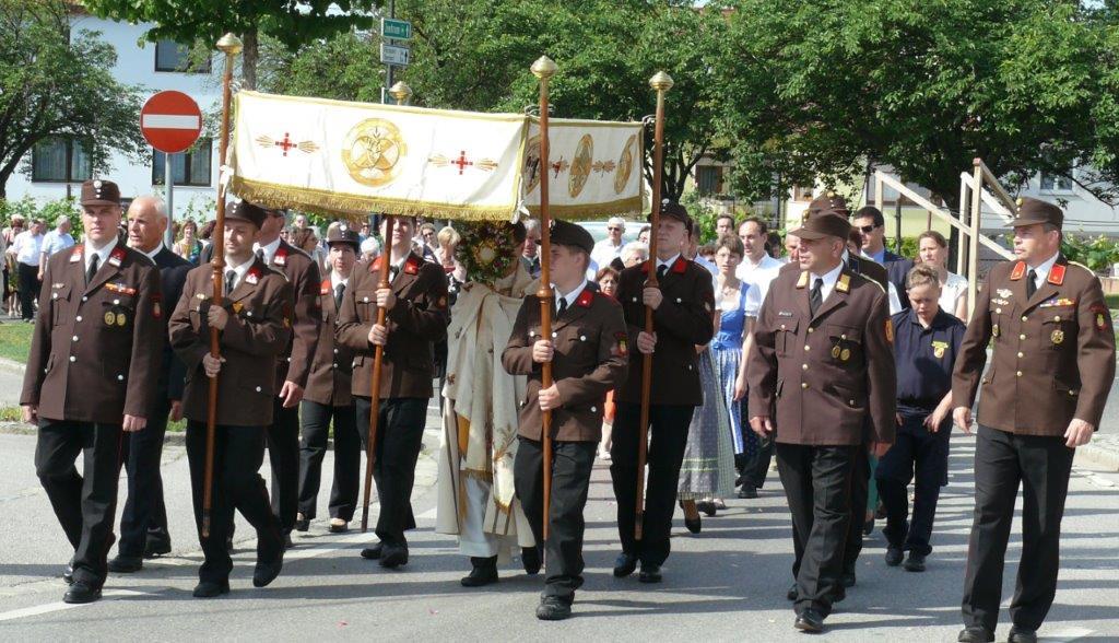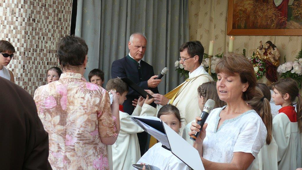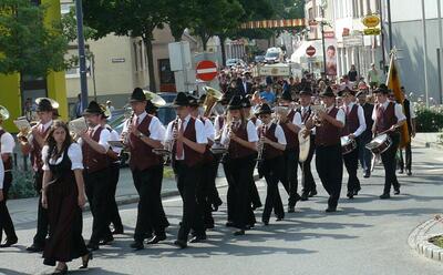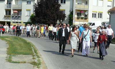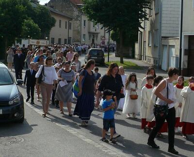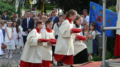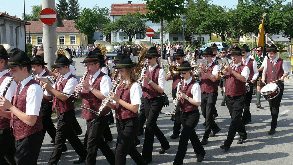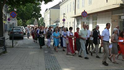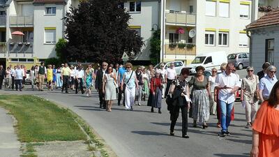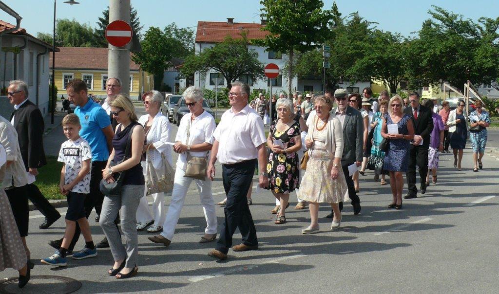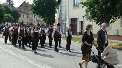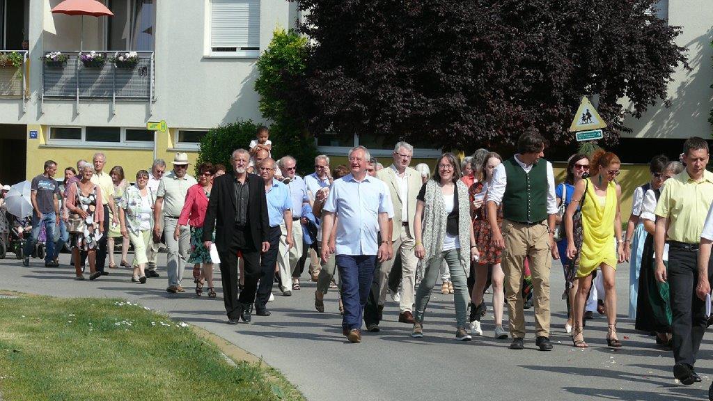 Auch heuer führte die Fronleichnamsprozession durch Hauptstraße, Adlergasse, Klostergasse und Kaiser Josef Straße zur Kirche. Eine Agape bei prächtigem Wetter rundete das festliche Ereignis ab.