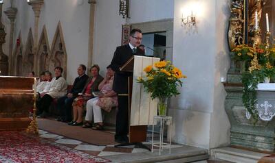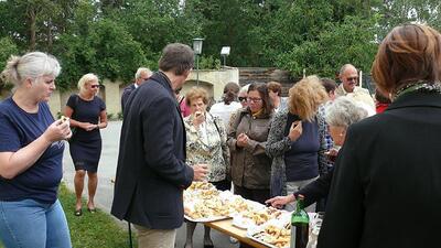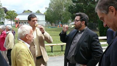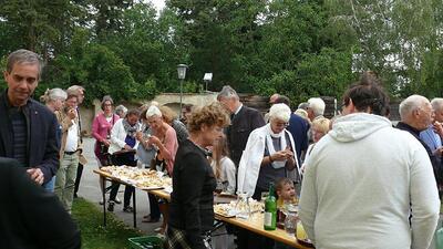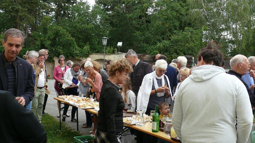 Nach der Messe erteilte der frisch gebackene Jungpriester mehr als eine Stunde lang den begehrten Primizsegen an Mitglieder unserer Pfarrgemeinde. Vor der Kirche hatte der Pfarrgemeinderat zu einer Agape geladen.