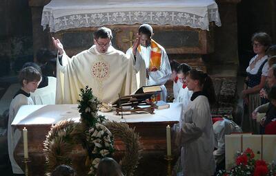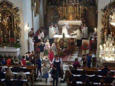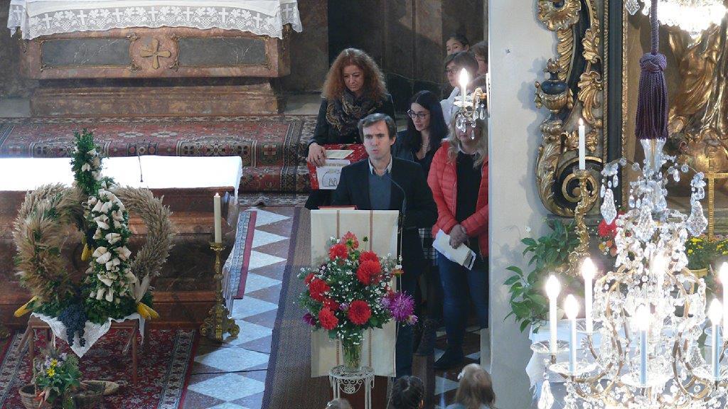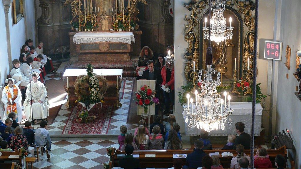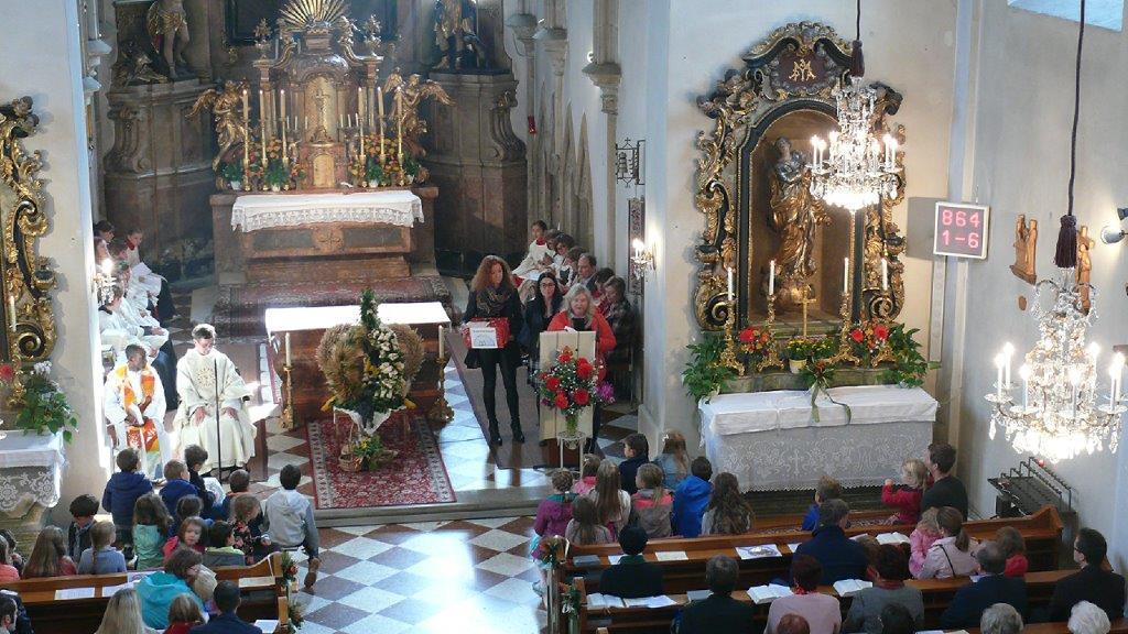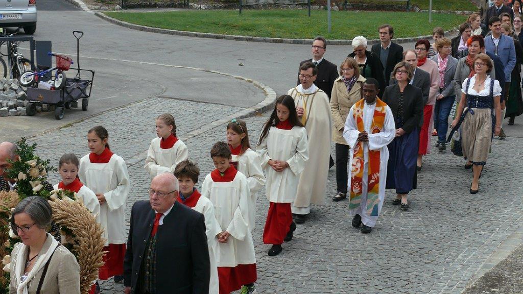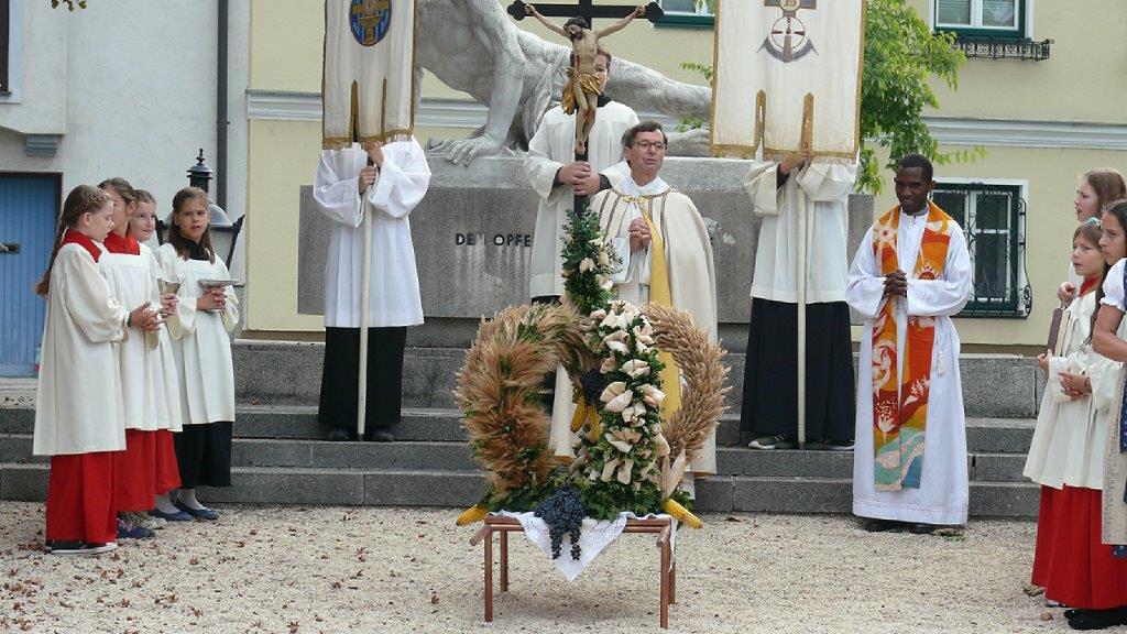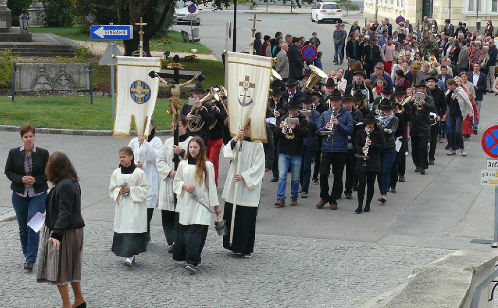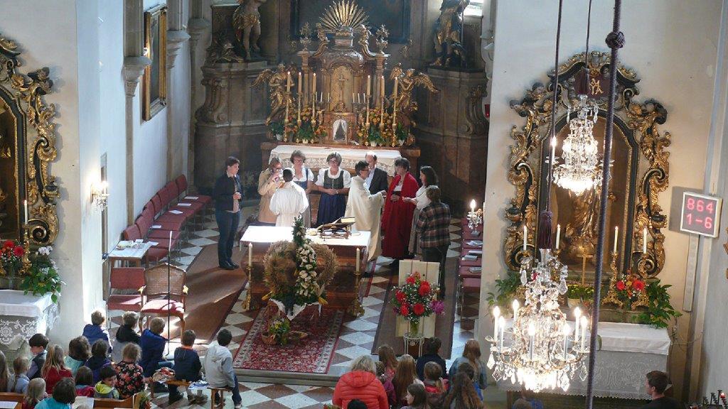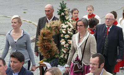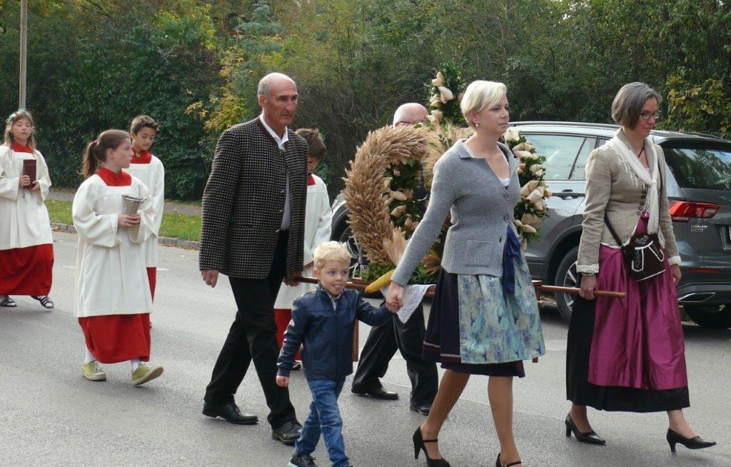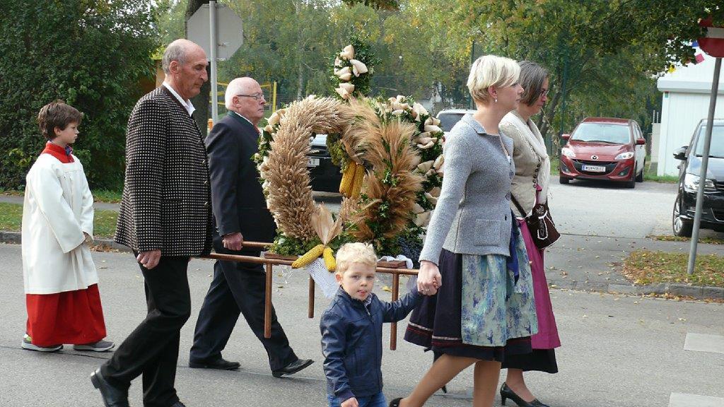 Am Sonntag, den 7. Oktober 2018, wurde die geschmückte Erntekrone vom Kirchenplatz über die Friedhofsgasse in die Pfarrkirche getragen. Nach der hl. Messe konnte man gemütlich beim Frühschoppen im Pfarrzentrum zusammensitzen.