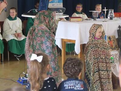 Am Sonntag, den 21.Oktober, wurde im Pfarrzentrum bei einer Familienmesse der Weltmissionssonntag gefeiert. Pia und Ingrid haben mit Kaplan Cornelius dessen Heimatkontinent Afrika vorgestellt. Athiopien stand dabei im Mittelpunkt: Die Menschen, die Landschaft, die Musik, die Kirche.