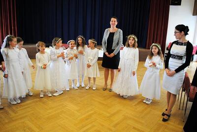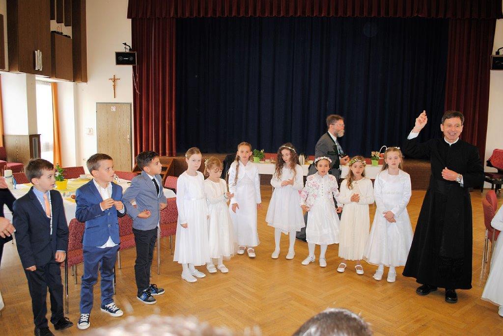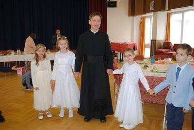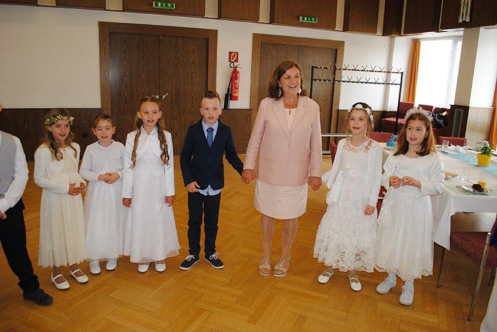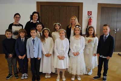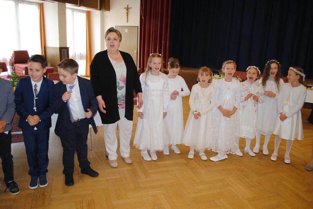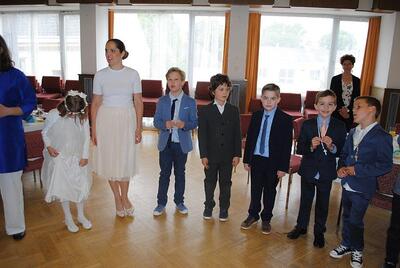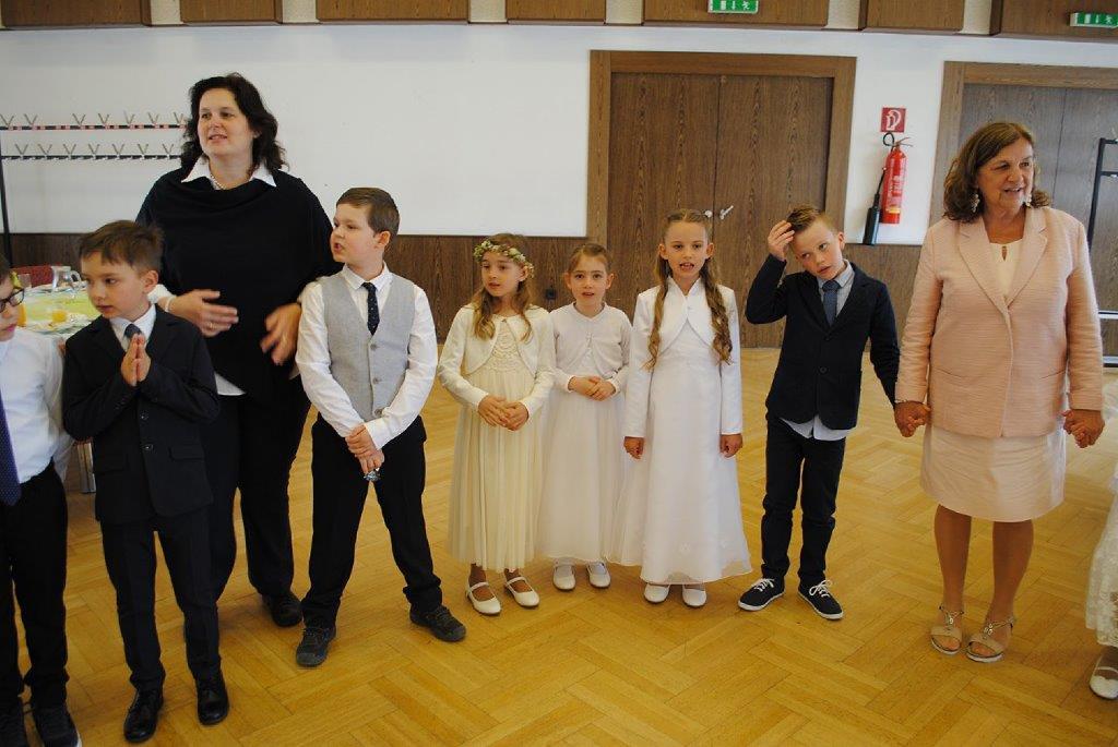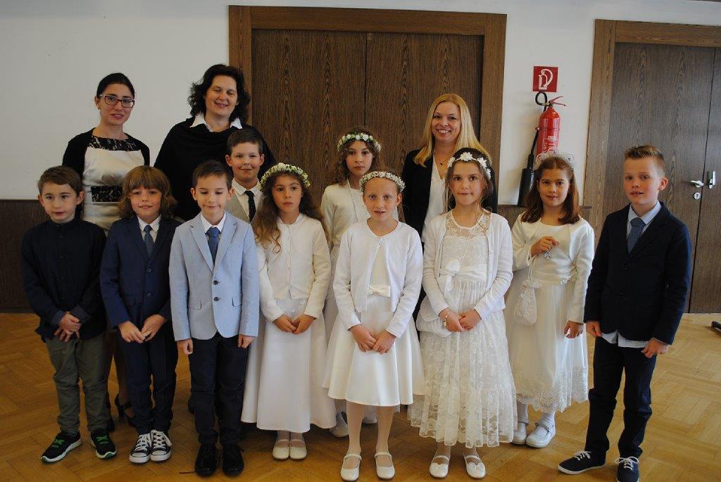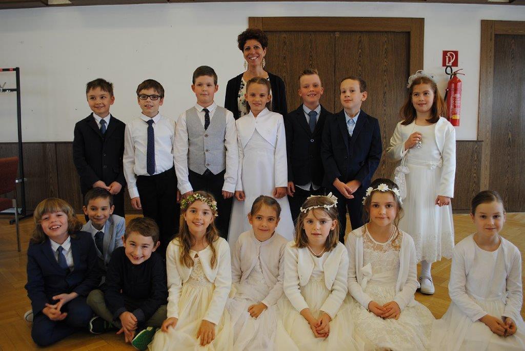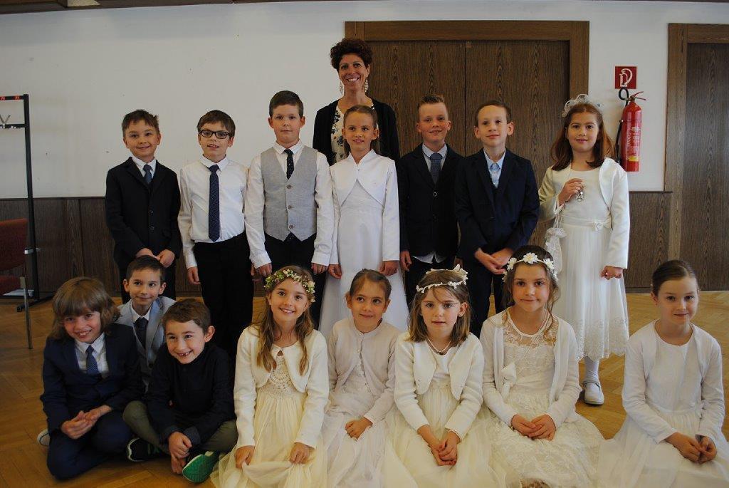 Die Tischbegleiterinnen und unsere Pastoralassistentin Pia Hecht haben die Kinder in den letzten Wochen bestens auf den Empfang des Sakramentes der Eucharistie vorbereitet. Nach dem gemeinsamen Frühstück wurden die Kinder noch gesegnet und konnten dann mit ihren Verwandten den Festtag ausklingen lassen!