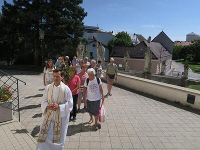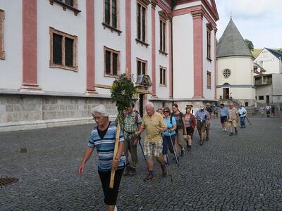 Morgen- und Abendgebet, das tägliche Rosenkranzgebet sowie das Mittragen des geschmückten Kreuzes waren die religiösen „Alltäglichkeiten“. Am Unterberg und am Mariazeller Gnadenaltar feierte Pfarrer Leopold mit den Wallfahrern die Heilige Messe.