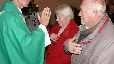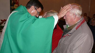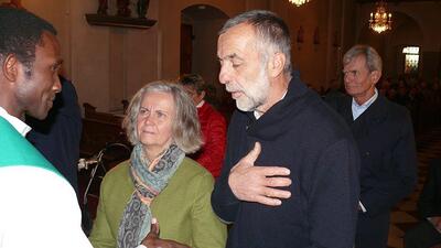 Nach der Predigt traten die Paare vor den Altar, um sich von Pfarrer Leopold Mathias und Kaplan Cornelius Komba segnen zu lassen.