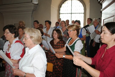 Am Kirtagsonntag stand Ing. Raimund Lahofer das letzte Mal am Dirigentenpult unseres Kirchenchores. Der stv. Vorsitzende des Pfarrgemeinderates Edwin Bartl dankte Lahofer für seine 60jährige Tätigkeit beim Kirchenchor, den er seit 1983 leitete.