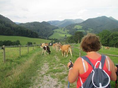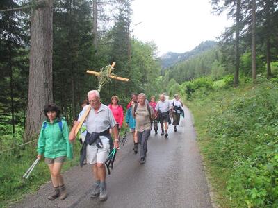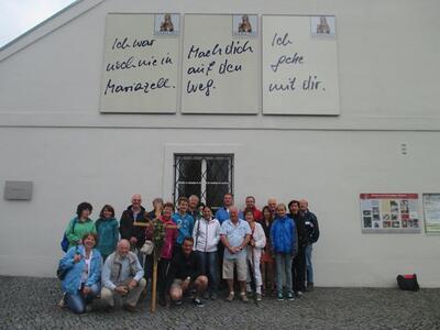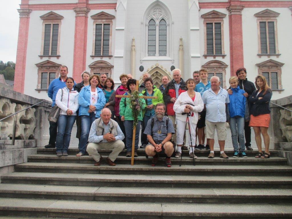 Vom 11.-14.August 2014 waren 22 Wallfahrer aus der Pfarre Wolkersdorf und Umgebung unterwegs nach Mariazell. Am ersten Tag gingen sie von Weißenbach/Triesting über die Steinwandklamm auf den Unterberg. Am zweiten Tag pilgerten sie über die Kalte Kuchl bis St.Aegyd am Neuwalde. Am dritten Tag erreichten sie nach dem Gscheid und der Walster glücklich Mariazell, wo sie über Nacht blieben. Die Besinnungen und der Gottesdienst am Donnerstagmorgen beim Gandenaltar standen unter dem Motto „Frieden leben aus der Bergpredigt“. Täglich wurde auch während des Gehens ein Rosenkranz gebetet. Zum Abschluss empfingen die Pilger in Wolkersdorf die Kirchenglocken, der Pfarrer und einige Angehörige und Freunde fürs Abschlussgebet. Der Ausklang war beim Heurigen von Gerti und Fredl Dostal – die alle Wallfahrer vom Begleitauto aus alle vier Tage betreuten.