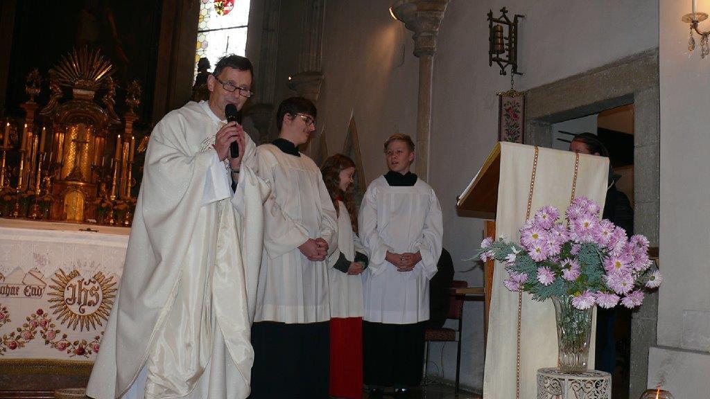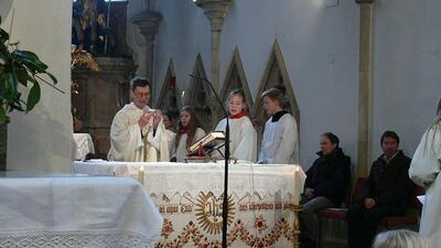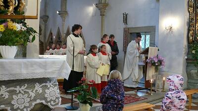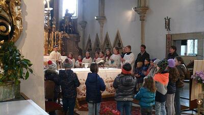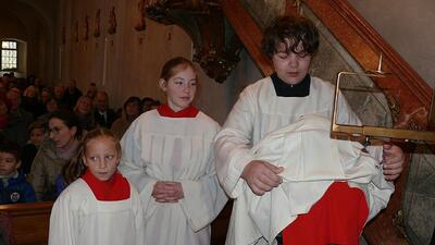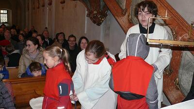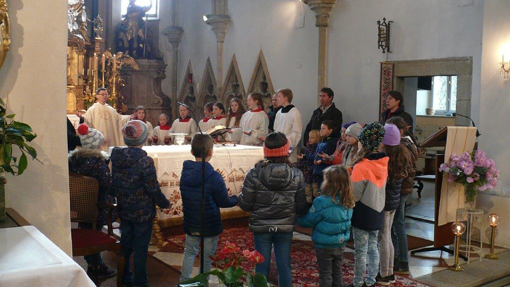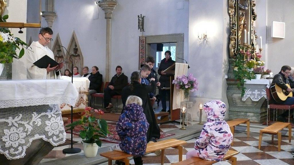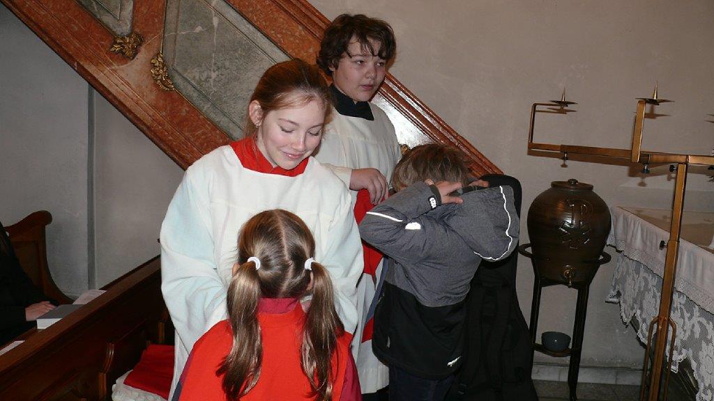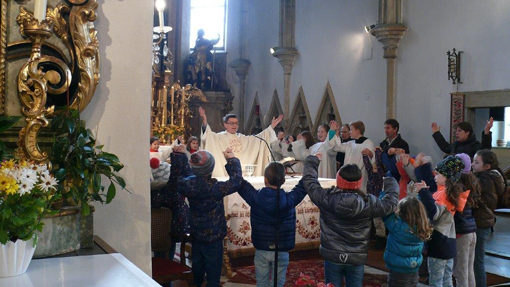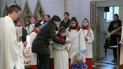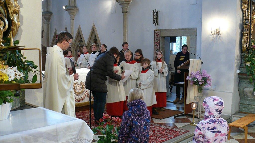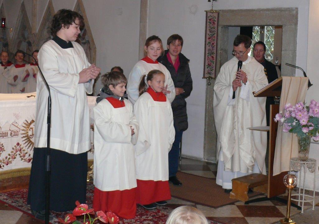 Am Ende des Kirchenjahres (Sonntag, 24.11.) begrüßte die Pfarrgemeinde Wolkersdorf ihre neuen Ministrantinnen und Ministranten. Gleichzeitig beendeten zwei ältere Ministranten ihren Dienst und wurden mit großem Dank verabschiedet.