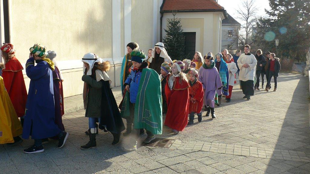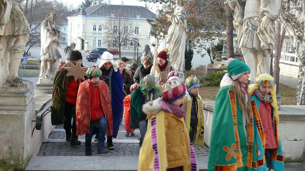 An die fünfzig Kinder waren heuer in Wolkersdorf zwei Tage lang als Sternsinger/-innen unterwegs.