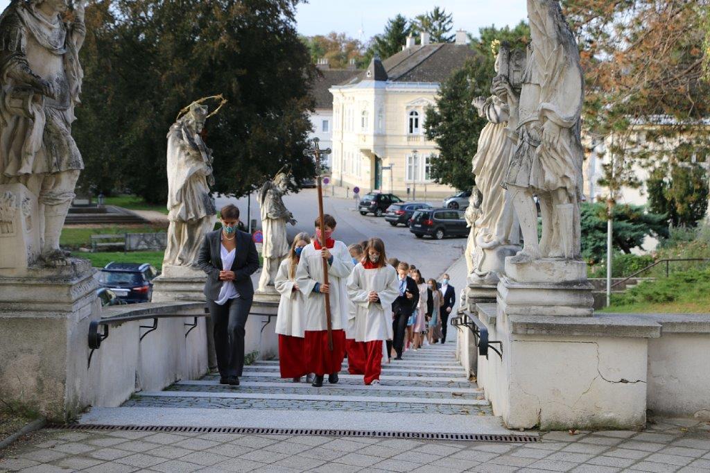 Mehr als 30 Jugendliche empfingen heuer bei uns am 11. Oktober 2020 das Sakrament der Firmung. Corona-bedingt spendete Dr. Gerald Gruber, Ordinariatskanzler der Erzdiözese Wien, die Firmung in zwei Gruppen.