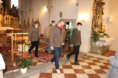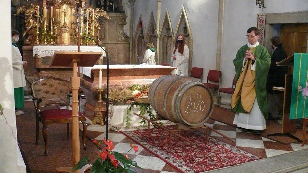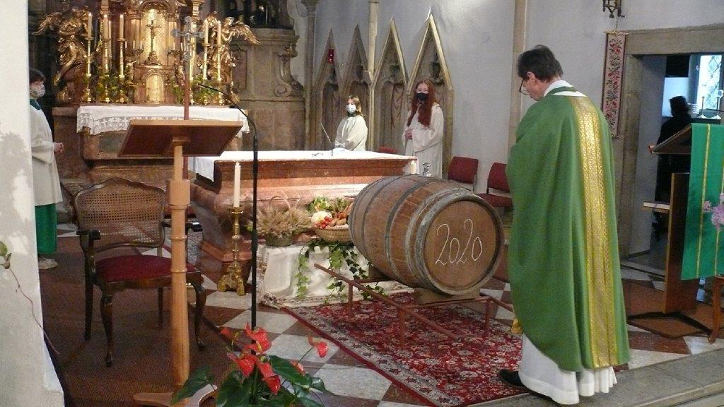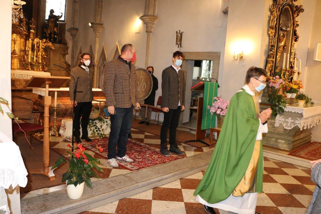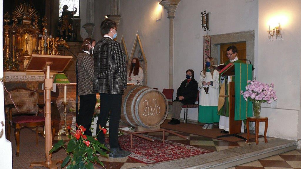 Am Sonntag, 8. November 2020, feierten wir Erntedank. Die Hauerburschen zogen mit dem Martini-Wein im Fass feierlich in die Kirche ein. Christl Mayer und ihre Helferinnen hatten Erntedank-Sträußchen vorbereitet, welche die BesucherInnen der Messe als Erinnerung an das Fest mit nach Hause nehmen konnten.