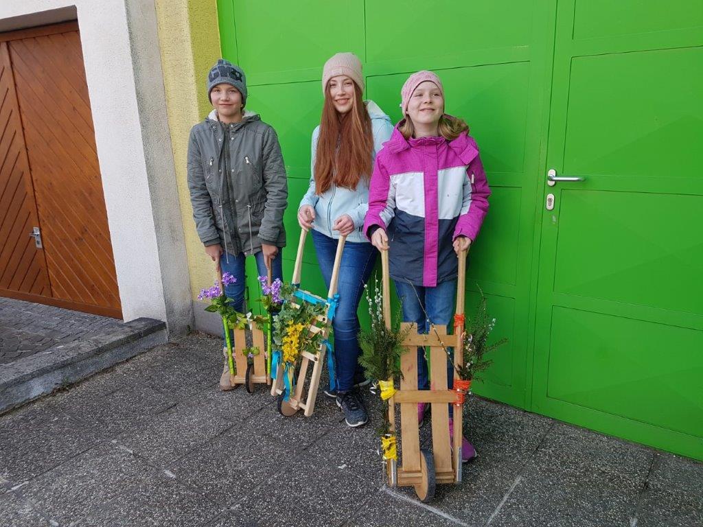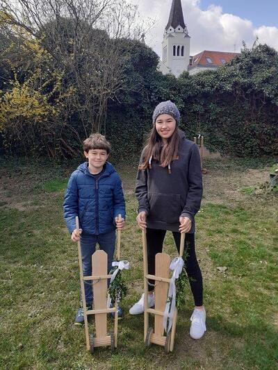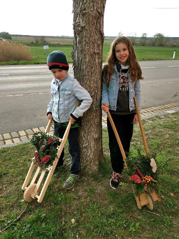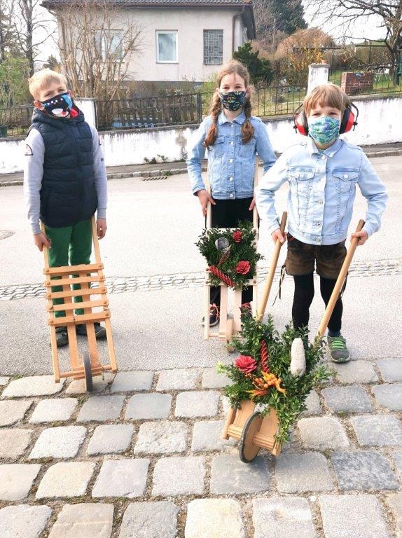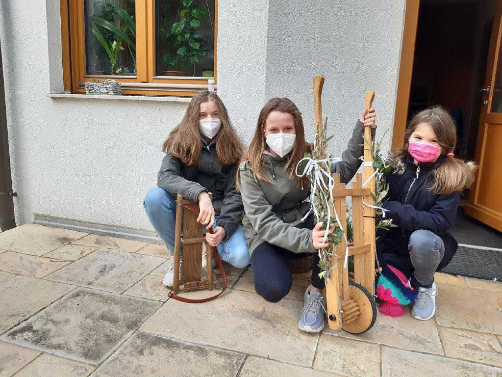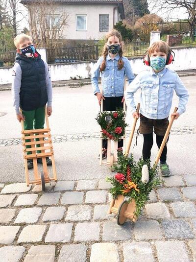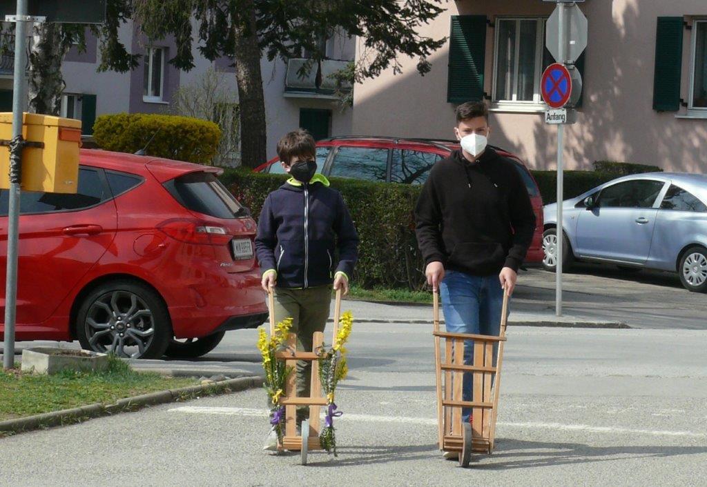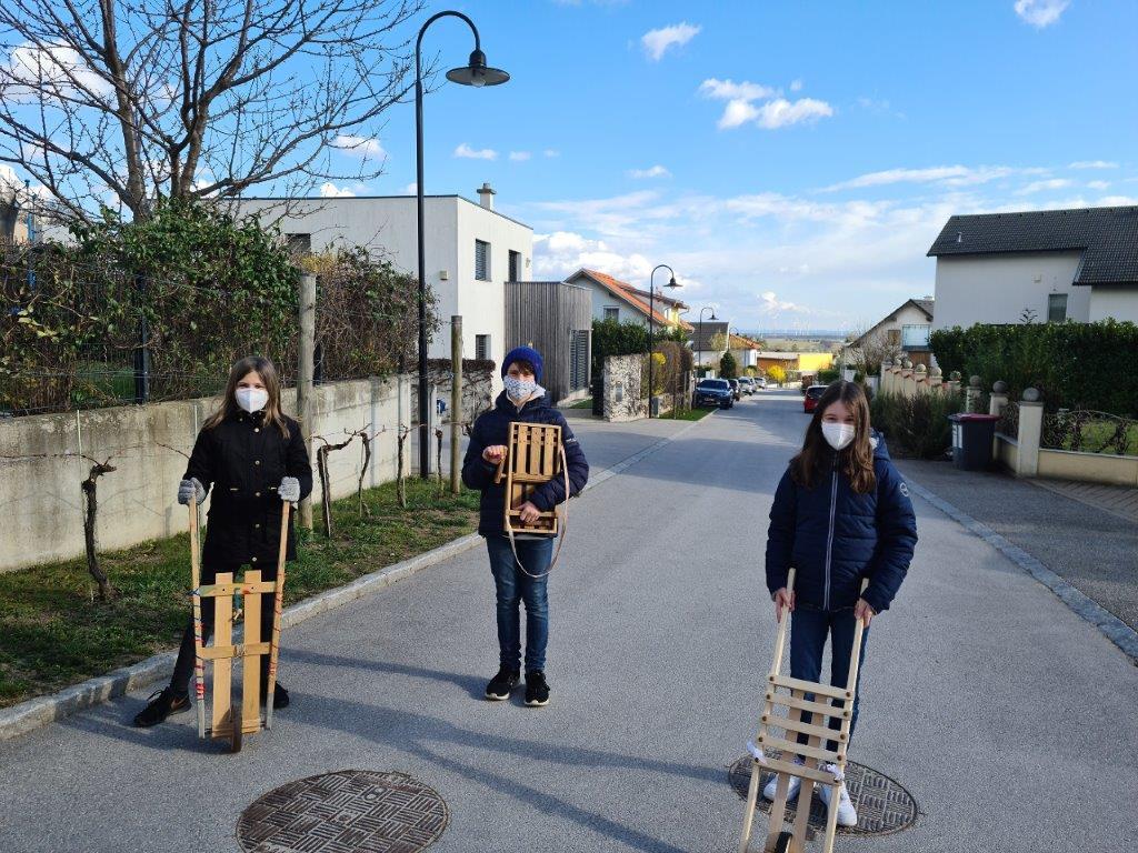 Unsere fleißigen Ratscherkinder – immerhin hieß es an zwei Tagen hintereinander um 5.30 Uhr aufstehen – waren heuer im Familienverband und als Kleingruppen mit FFP-2 Masken unterwegs. Unser großer Dank geht an die Kinder und an die Organisatorin Maria Huber.
