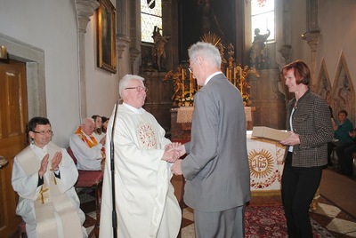 Am Sonntag der göttlichen Barmherzigkeit feierte Pfarrer i.R. Kirchenrektor Erzbischöflicher Konsistorialrat Josef Bauer mit der Pfarre im Rahmen eines Festgottesdienstes seinen 85. Geburtstag. Bei der Festpredigt skizzierte Pfarrer Msgr. Leopold Mathias seinen Lebensweg als Priester. Am Ende des Gottesdienstes gratulierte stv. Vorsitzender des Pfarrgemeinderates Edwin Bartl im Namen der Pfarre dem Jubilar. Die Festmesse wurde vom Orchester und dem Kirchenchor Obersdorf sowie dem Ensemble Altsimmering unter der Leitung von Mag. Doris Radlmair mit der Krönungsmesse von Wolfgang Amadeus Mozart musikalische gestaltet.