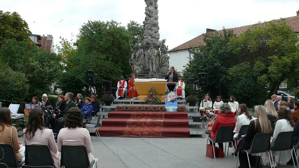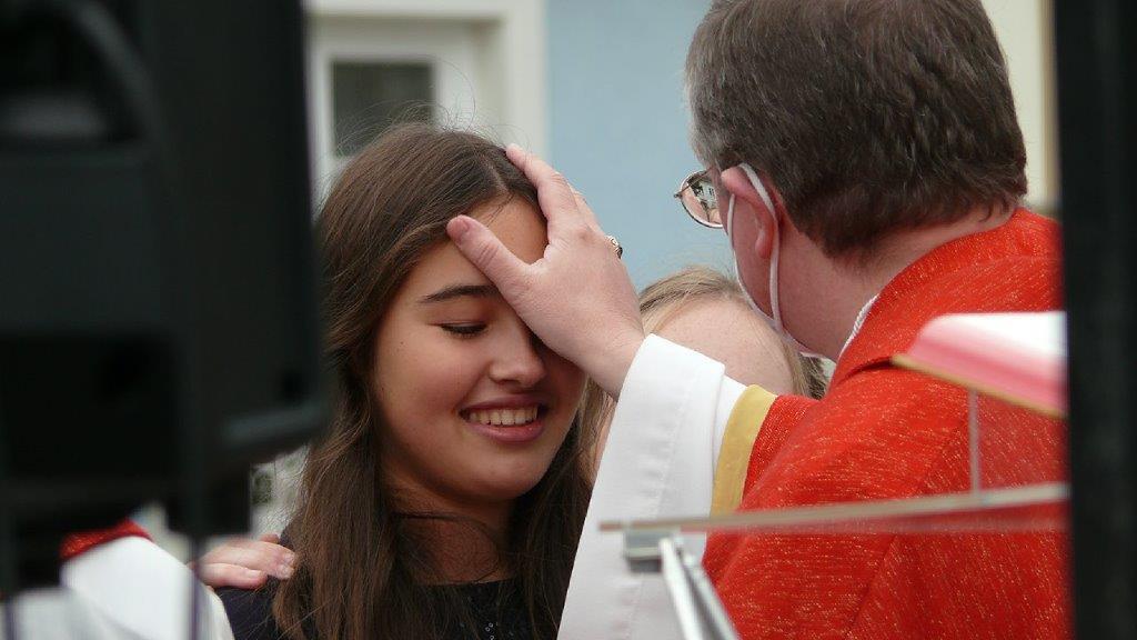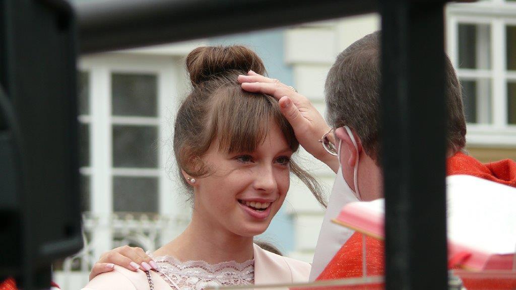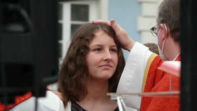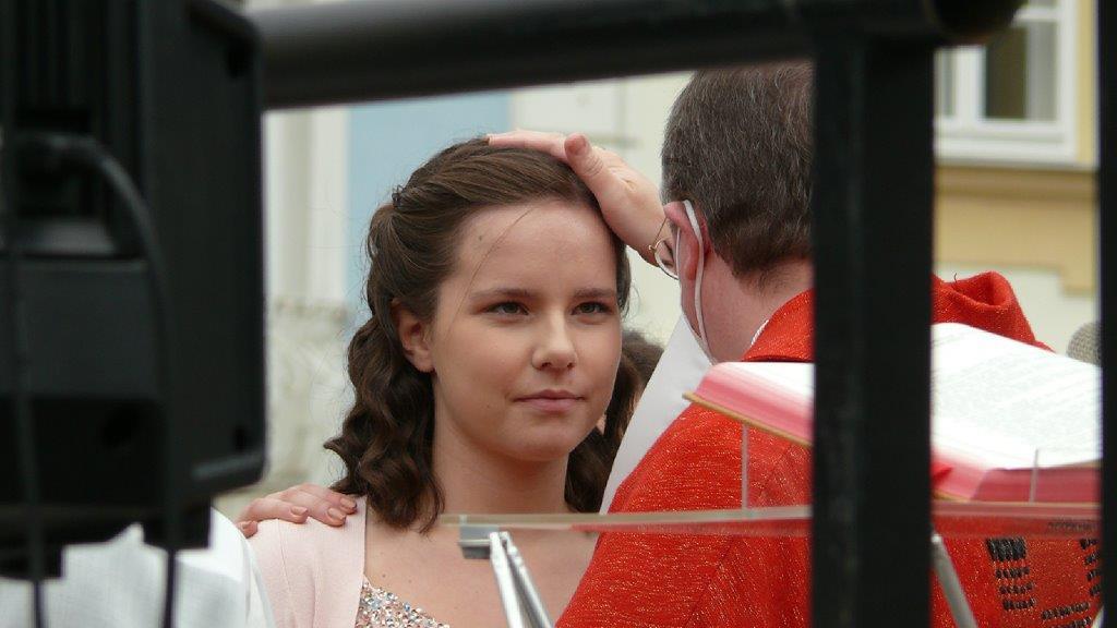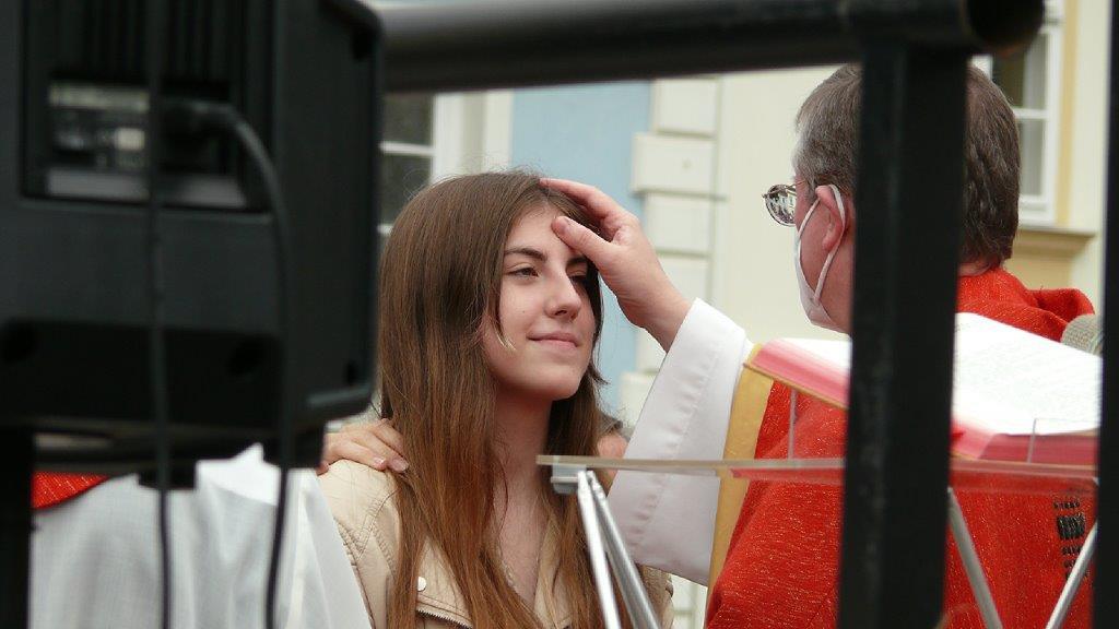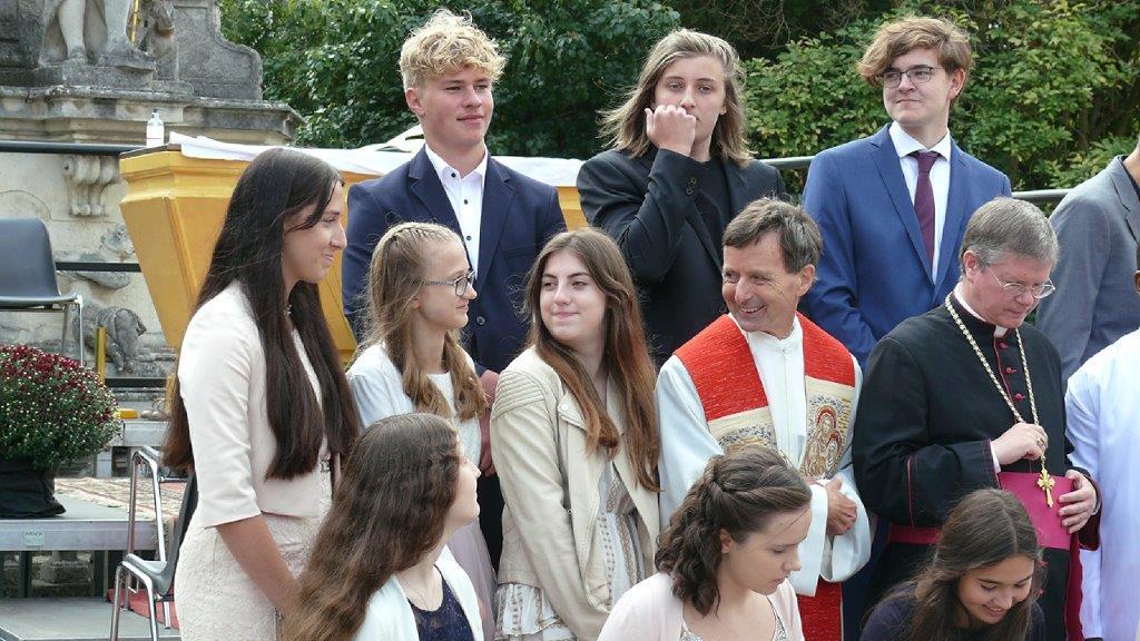 Jetzt hat sie doch noch stattgefunden: Die im Frühjahr wegen der Pandemie verschobene Firmung wurde am Sonntag, 19. September 2021, nachgeholt. Es ist für die fast 30 Firmlinge und deren Angehörige ein schönes und würdiges Fest geworden, der Kirchenplatz vor der Dreifaltigkeitssäule bot einen passenden Rahmen.