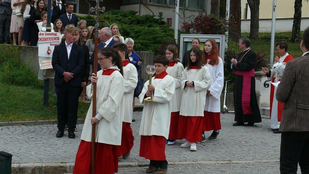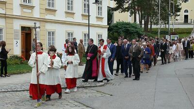 Der Regens des Wiener Priesterseminars Richard Tatzreiter zelebrierte gemeinsam mit Stadtpfarrer Leopold Mathias und Kaplan Auguste die Festmesse. Wir danken allen Helferinnen und Helfern und der Stadtkapelle für ihren Einsatz.