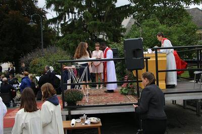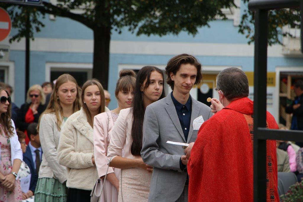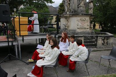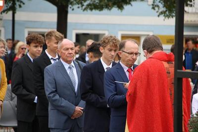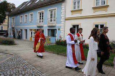 Der Regens des Wiener Priesterseminars Richard Tatzreiter zelebrierte gemeinsam mit Stadtpfarrer Leopold Mathias und Kaplan Auguste die Festmesse. Wir danken allen Helferinnen und Helfern und der Stadtkapelle für ihren Einsatz.