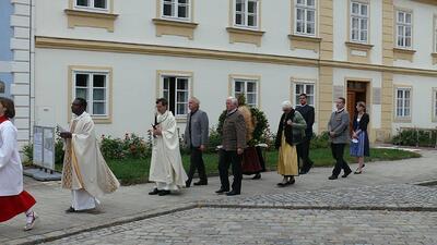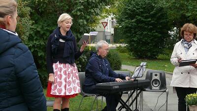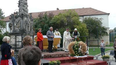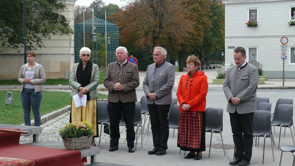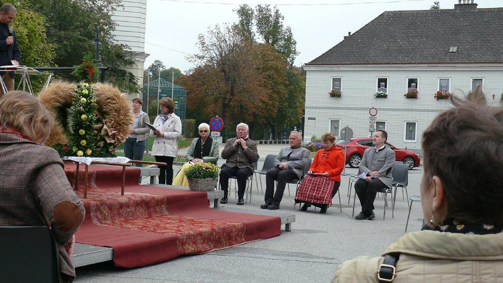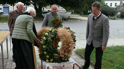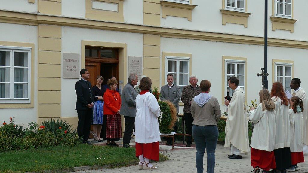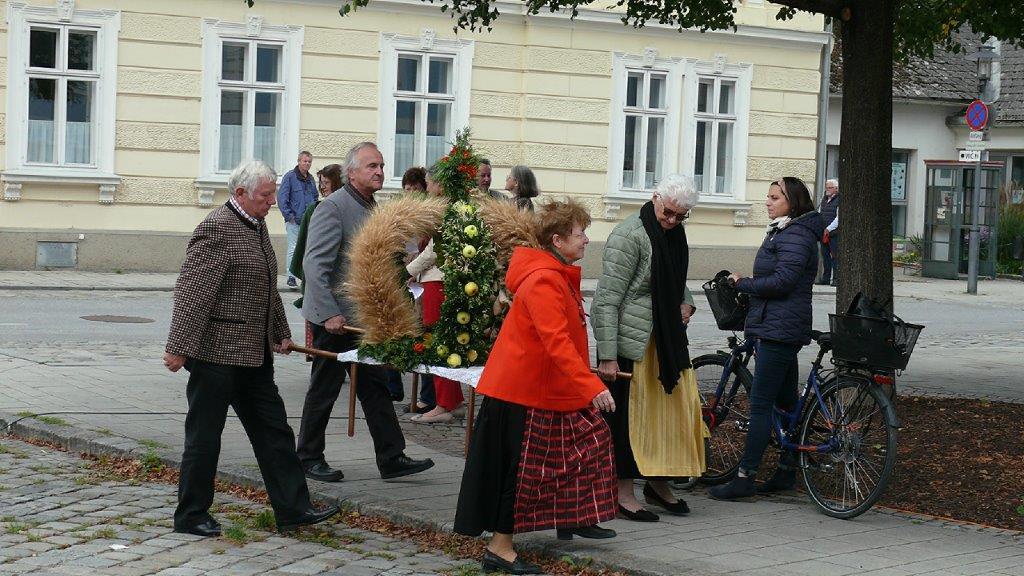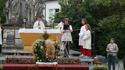 Am Sonntag, 3.10.2021, feierten wir unser Erntedankfest – abermals im Freien vor der Dreifaltigkeitssäule auf dem Kirchenplatz. Maria Rinnhofer und Eva Schödl erfreuten mit Sologesang, begleitet von unserem Organisten Leopold Hiebner auf dem Keyboard.