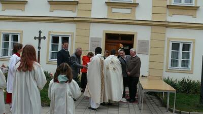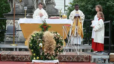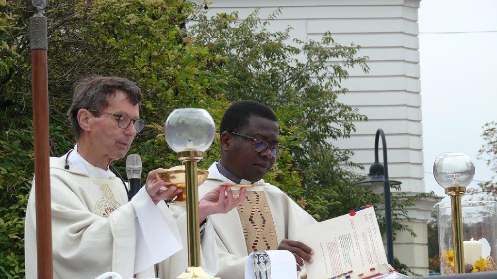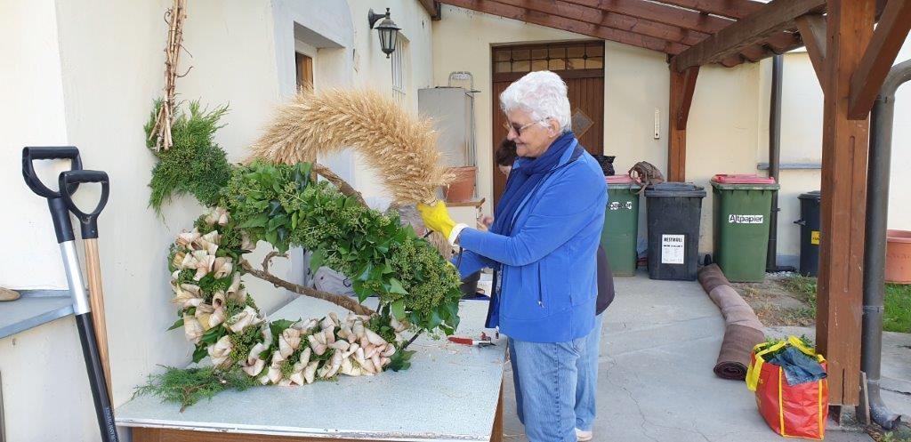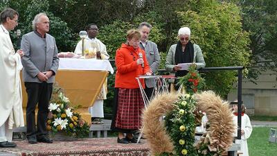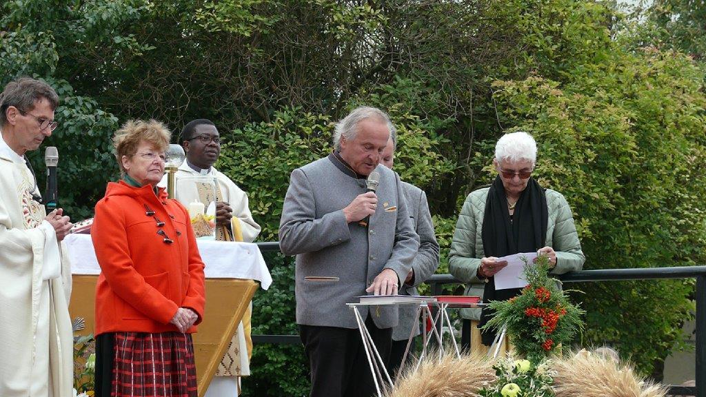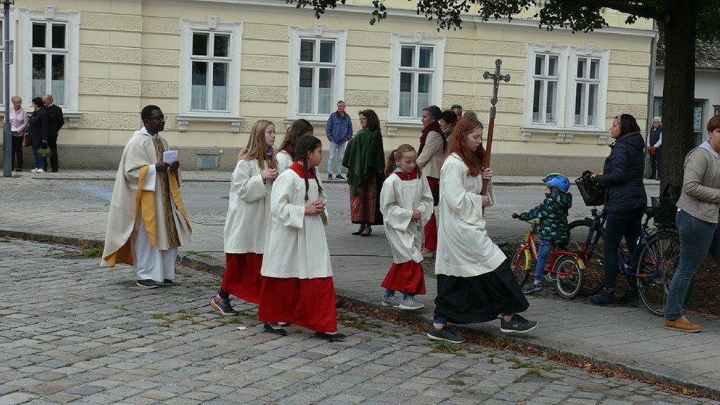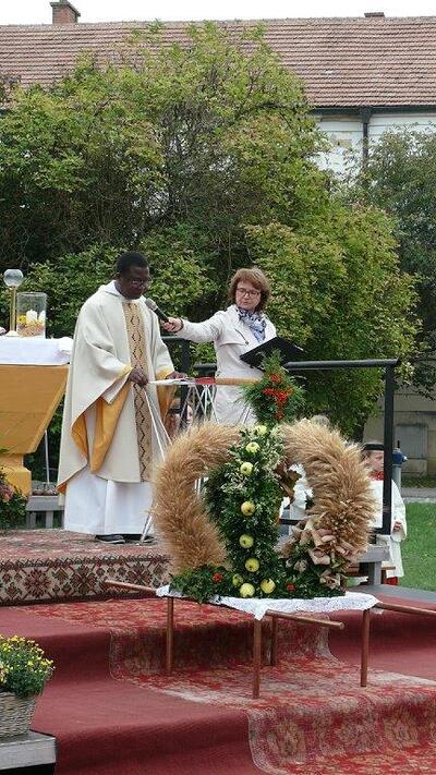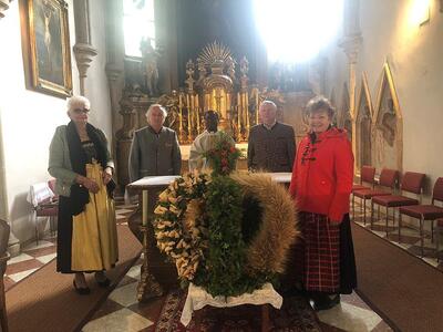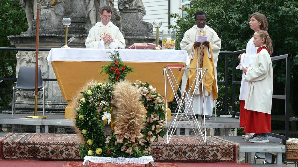Zelebriert haben Stadtpfarrer Leopold Mathias und unser neuer Kaplan Auguste Yenou. Vielen Dank auch an Christl Mayer und deren Team für das Schmücken der Erntekrone.