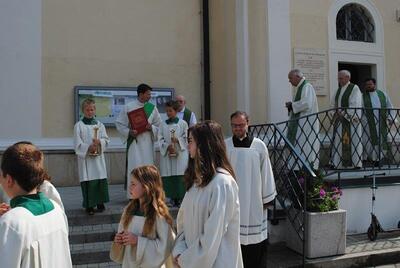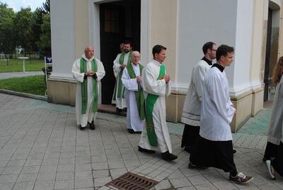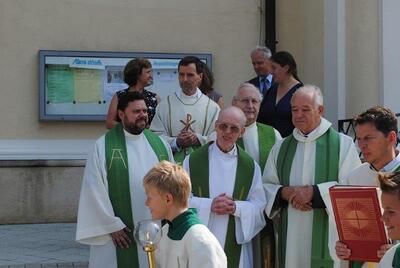 Am Sonntag, 28. Juni 2015 feierte Pfarrer Msgr. Dr. Leopold Mathias mit seiner Pfarrgemeinde sein 40jähriges Priesterjubiläum. Die Festpredigt hielt Pfarrer Herwig Porstner, einer seiner Vorgänger in Wolkersdorf. Die Festmesse wurde vom Ensemble "Brass for fun", der Schola, Herrn Mathias Koller an der Violine, der Organistin Frau Eva Schütz und der Kantorin Frau Maria Rinnhofer musikalisch gestaltet. Nach dem Gottesdienst gratulierten der stv. Vorsitzende des Pfarrgemeinderates Edwin Bartl für die Pfarrgemeinde und Frau Bgm. Dipl.-Ing. Anna Steindl im Namen der Stadtgemeinde. Die KJ überbrachte die Glückwünsche in Form eines Kurzfilmes und einer Torte. Die Feier klang bei einer Agape vor der Pfarrkirche aus.