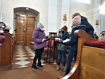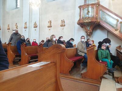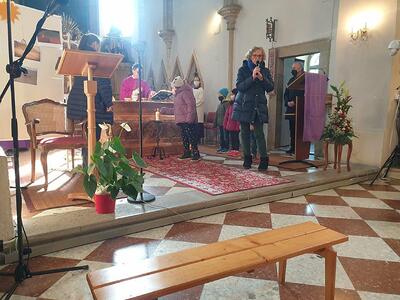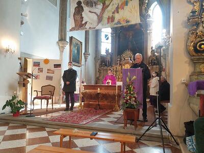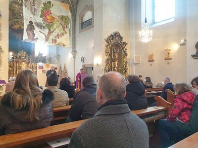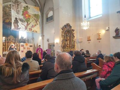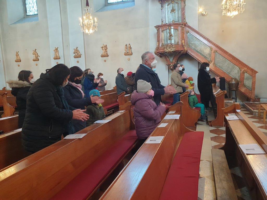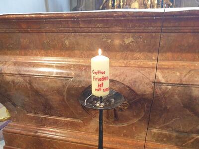 Ein Kind entzündete nach dem Vater Unser eine Friedenskerze für alle Menschen in Kriegsgebieten dieser Erde. Zum Abschluss hat der Wahlleiter die Kandidat/innen für die Pfarrgemeinderatswahl vorgestellt.