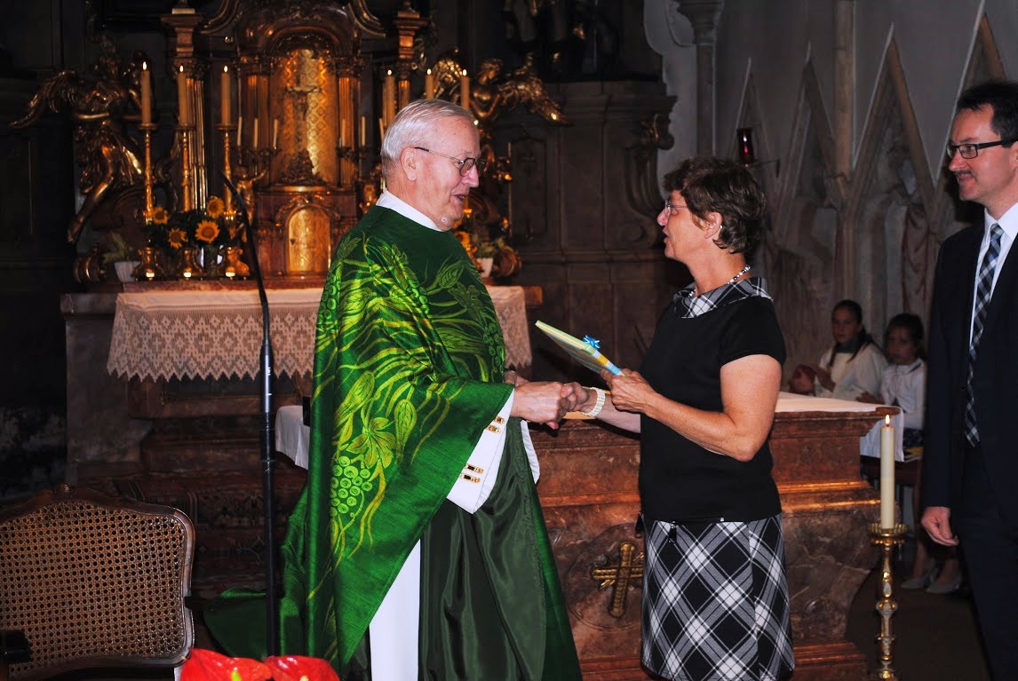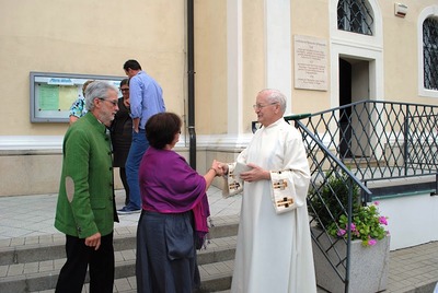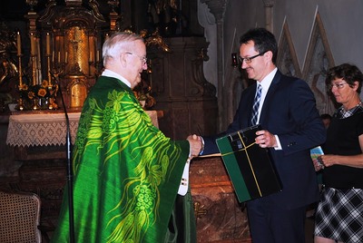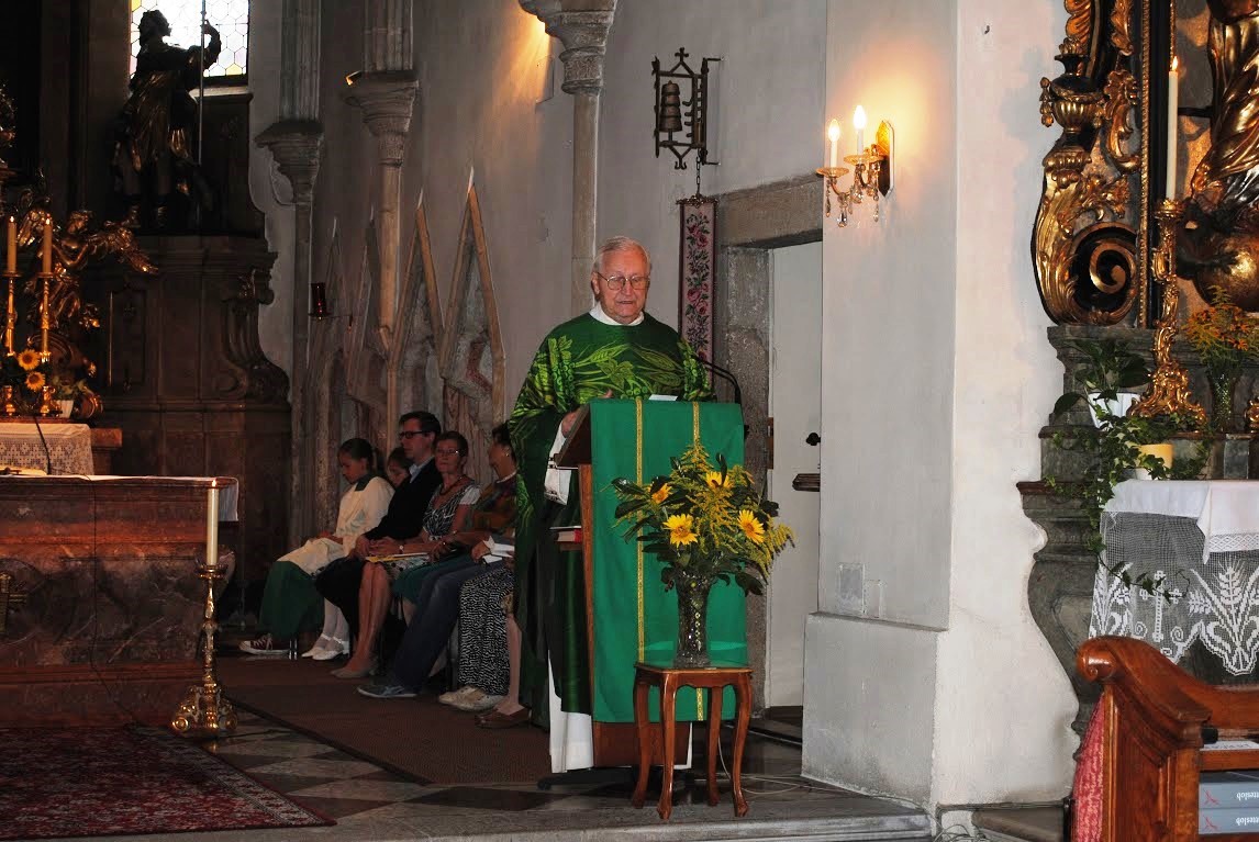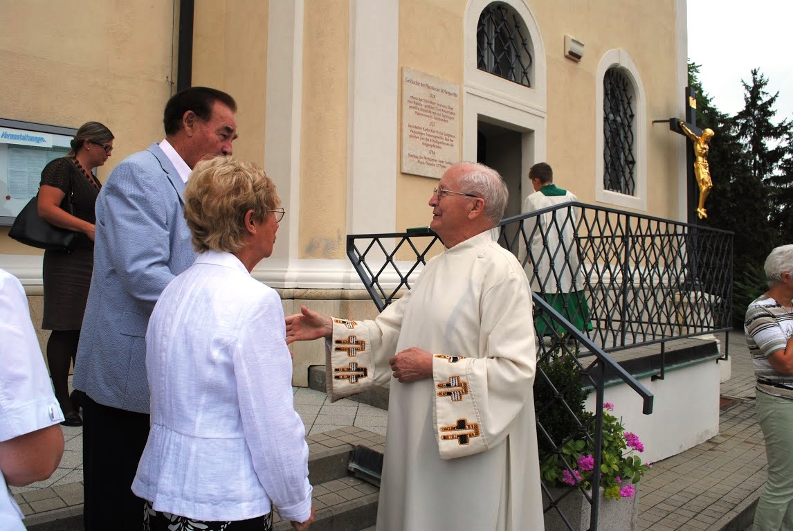 Monsignore Karl Ponweiser feierte am Sonntag den 2. August 2015 im Rahmen einer Festmesse in der Wolkersdorfer Pfarrkirche seinen 85. Geburtstag. Im Namen der Pfarre überbrachte PGR Martin Strobel die Glück- und Segenswünsche.