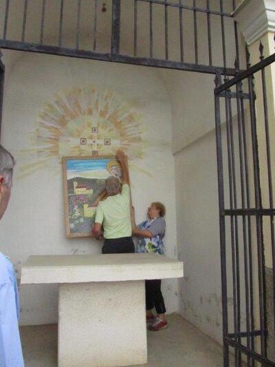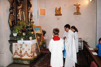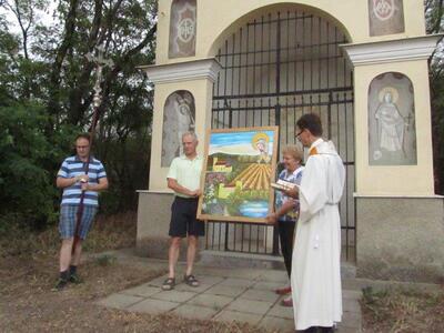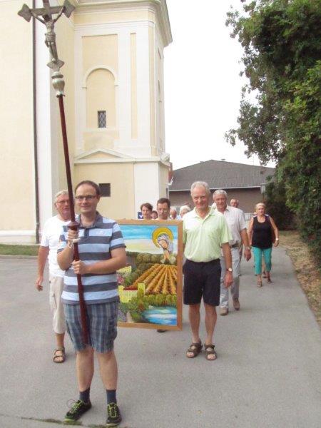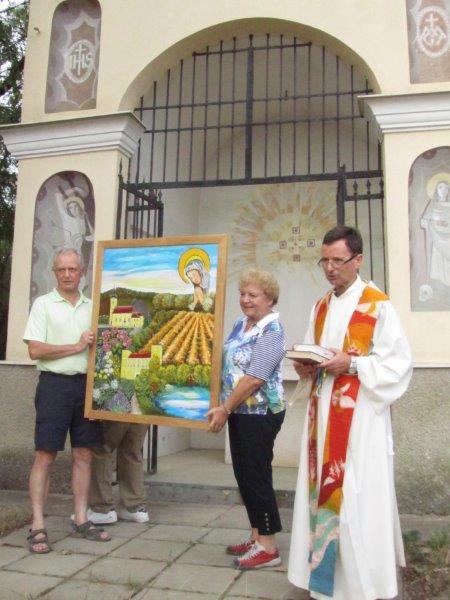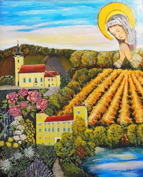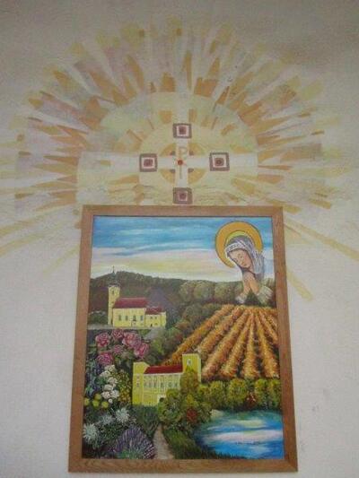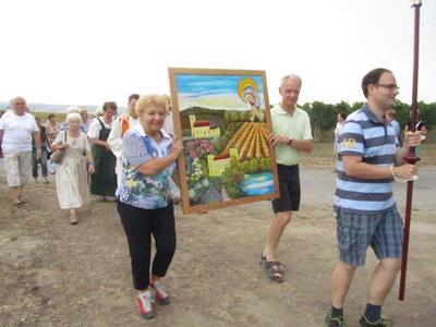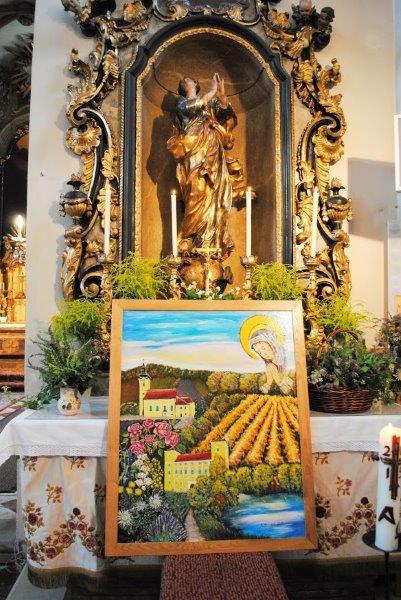 Ebenfalls gesegnet wurde das Bild der "Weinviertler Madonna" das von der Malerin Heidi Tschermenk aus Wolkersdorf in Acryltechnik gemalt wurde. Am Nachmittag wurde das Bild in einer feierlichen Prozession von der Pfarrkirche St. Margaretha in die Rochuskapelle am Gerichtsberg übertragen.