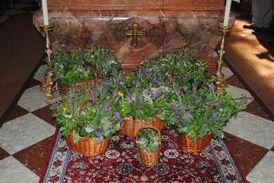 Am Tag Mariä Himmelfahrt wurden beim Gottesdienst Kräutersträußchen gesegnet, die nach dem Gottesdienst an die Mitfeierenden verteilt wurden.
