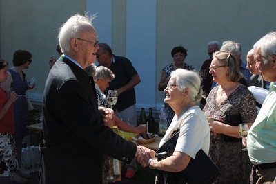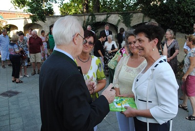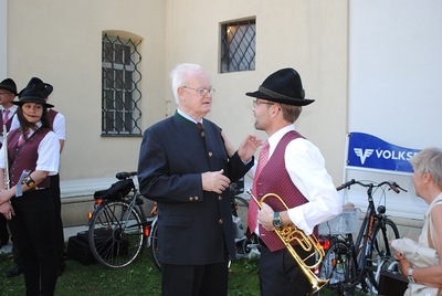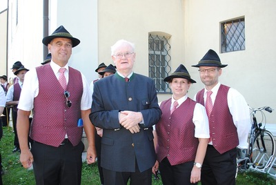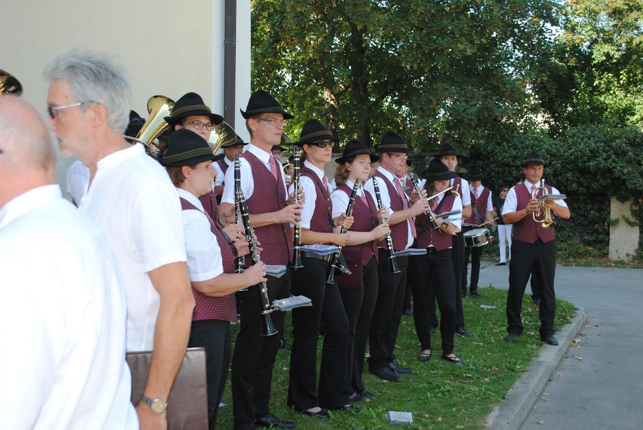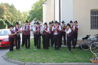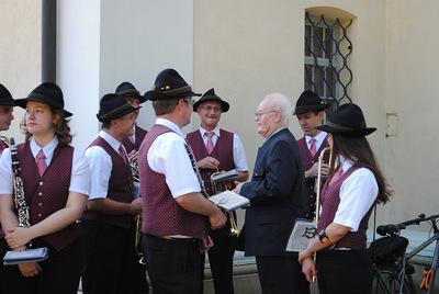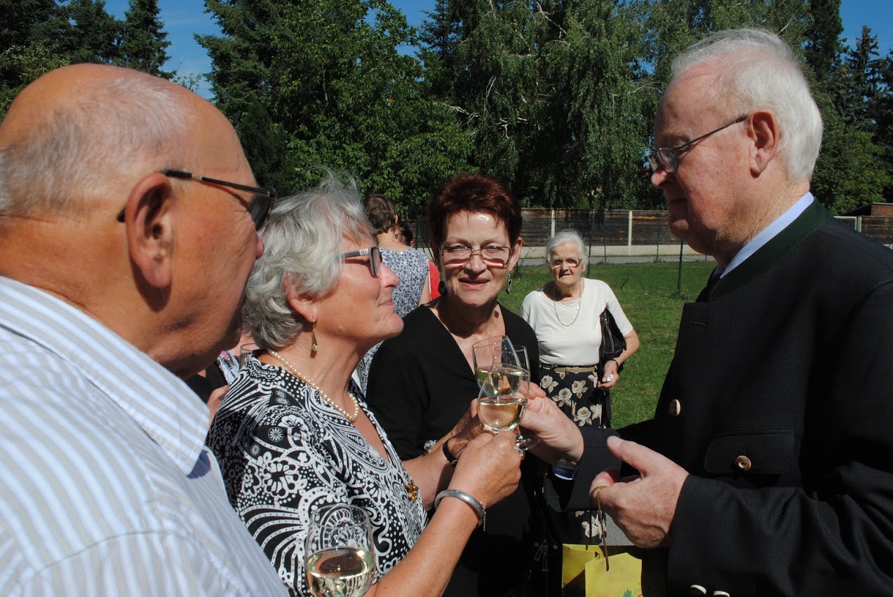 Bei der anschließenden Agape spielte die Stadtkapelle Wolkersdorf, die der Jubilar 13 Jahre lang leitete, auf. Bürgermeisterin Anna Steindl gratulierte im Namen der Stadtgemeinde Herrn Ing. Raimund Lahofer herzlich.