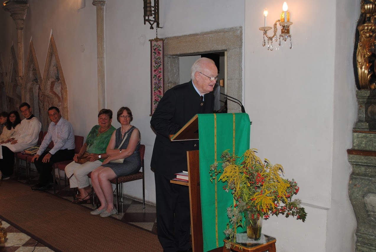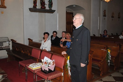 Beim Gottesdienst, den Pfarrer Leopold Mathias und Altpfarrer Franz Führer mit der Gemeinde feierten, dankte Pfarrer Führer dem Jubilar in der Festpredigt für sein segensreiches Wirken. Für die Pfarre überbrachte der stv. Vorsitzendes des Pfarrgemeinderates Edwin Bartl die Glückwünsche. Der Gottesdienst wurde vom Kirchenchor, dem Frauenensemble und der Männerschola unter der Leitung von Maria Rinnhofer, der Organistin Eva Schütz und Josef Pleil an der Trompete feierlich gestaltet.