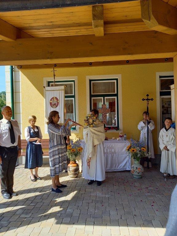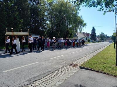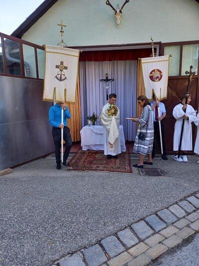 Riedenthal feierte das Fronleichnamsfest heuer wieder in gewohnter Form. Die Prozession führte von der Kirche bis zum Dorfhaus, wo die Feier mit einer Agape endete.