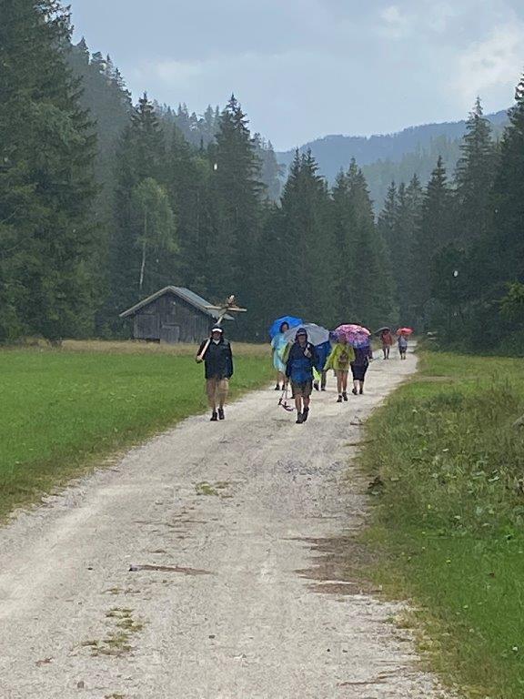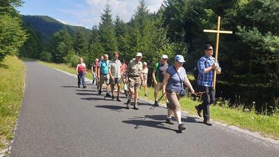 Am letzten Tag erklommen die Pilger das Gscheid und bei leichtem Nieseln den Habertheuer Sattel. So erreichten sie ihr Ziel Mariazell: Dort wurde in der Basilika der Abschlussgottesdienst gefeiert.