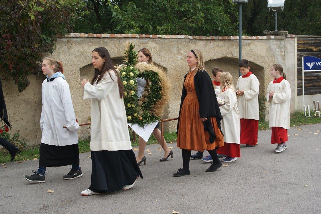 Am Sonntag, 2.10.2022 feierten wir das Erntedankfest in Wolkersdorf. Nach der Segnung der Erntekrone am Kirchenplatz folgte die Prozession über die Friedhofsgasse, Kaiser-Josef-Straße in die Pfarrkirche. Herzlichen Dank an Christl Maier und Ihr Team für das Schmücken der Erntekrone.