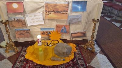 Bei der Familienmesse am Sonntag, 26.Februar 2023 wurden die Erstkommunionkinder vorgestellt. Das Thema des Gottesdienstes war: „Wir gehen mit Jesus in die Wüste“.